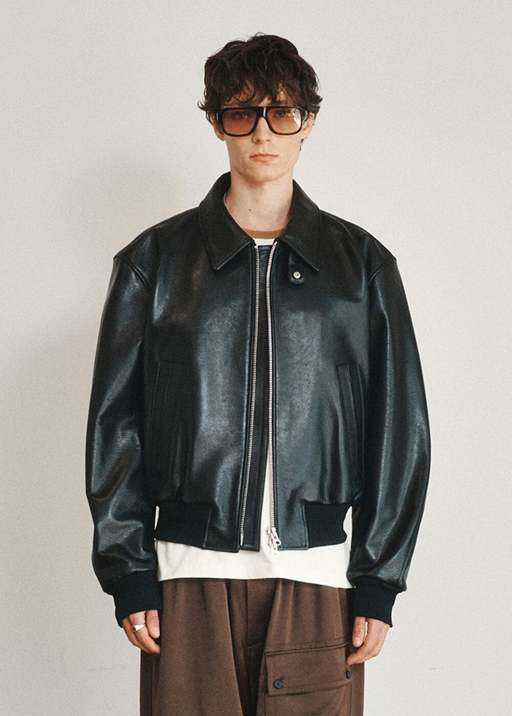 BEN GOAT LEATHER SHORT BOMBER JACKET (BLACK) L SIZE