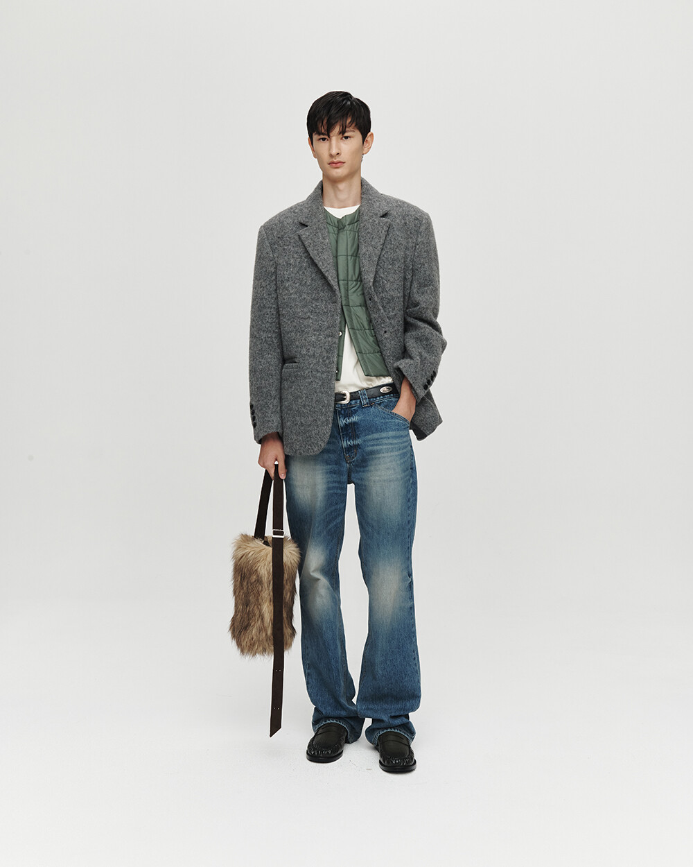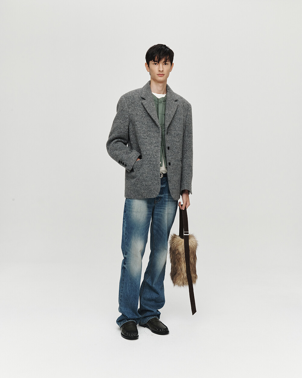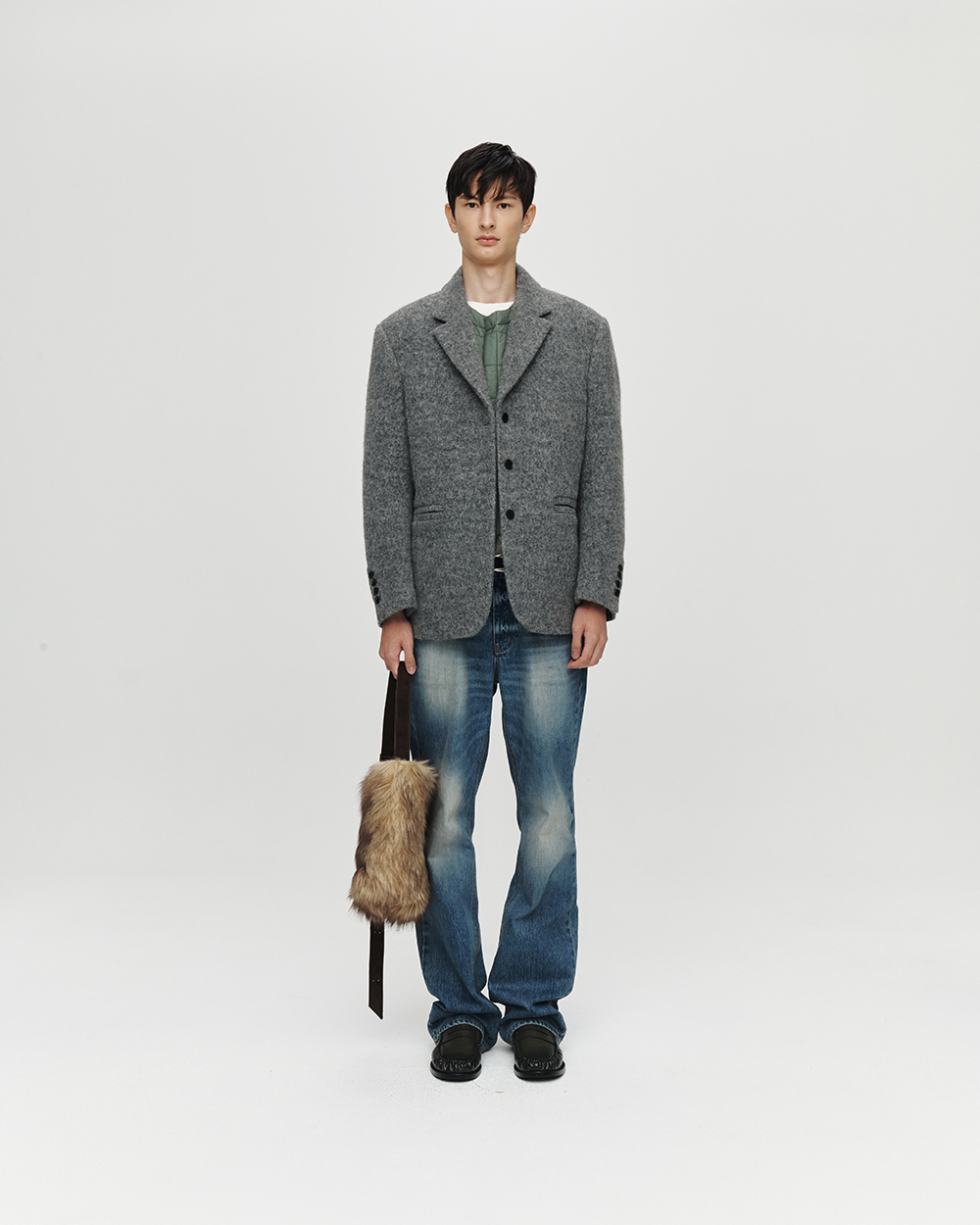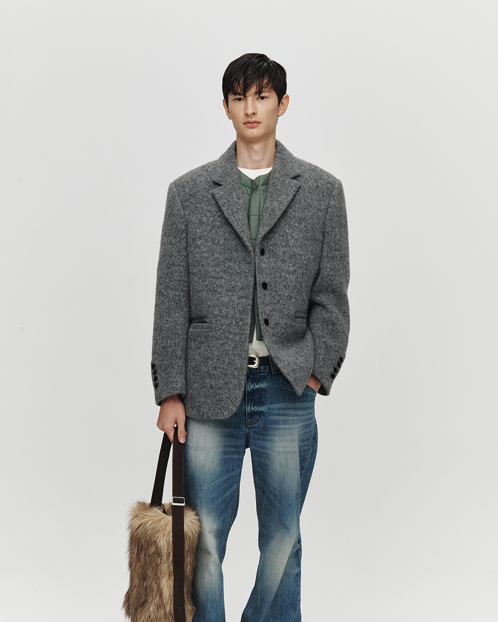 HET SQUARE WOOL SINGLE JACKET (CHARCOAL)