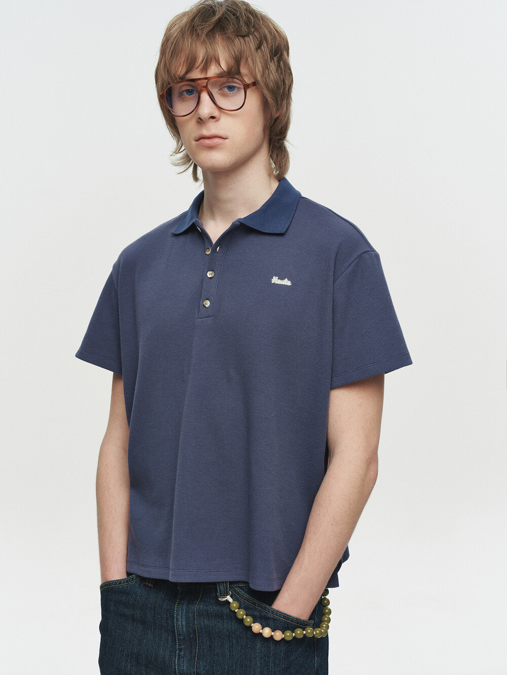SIGNATURE WAFFLE POLO (NAVY)