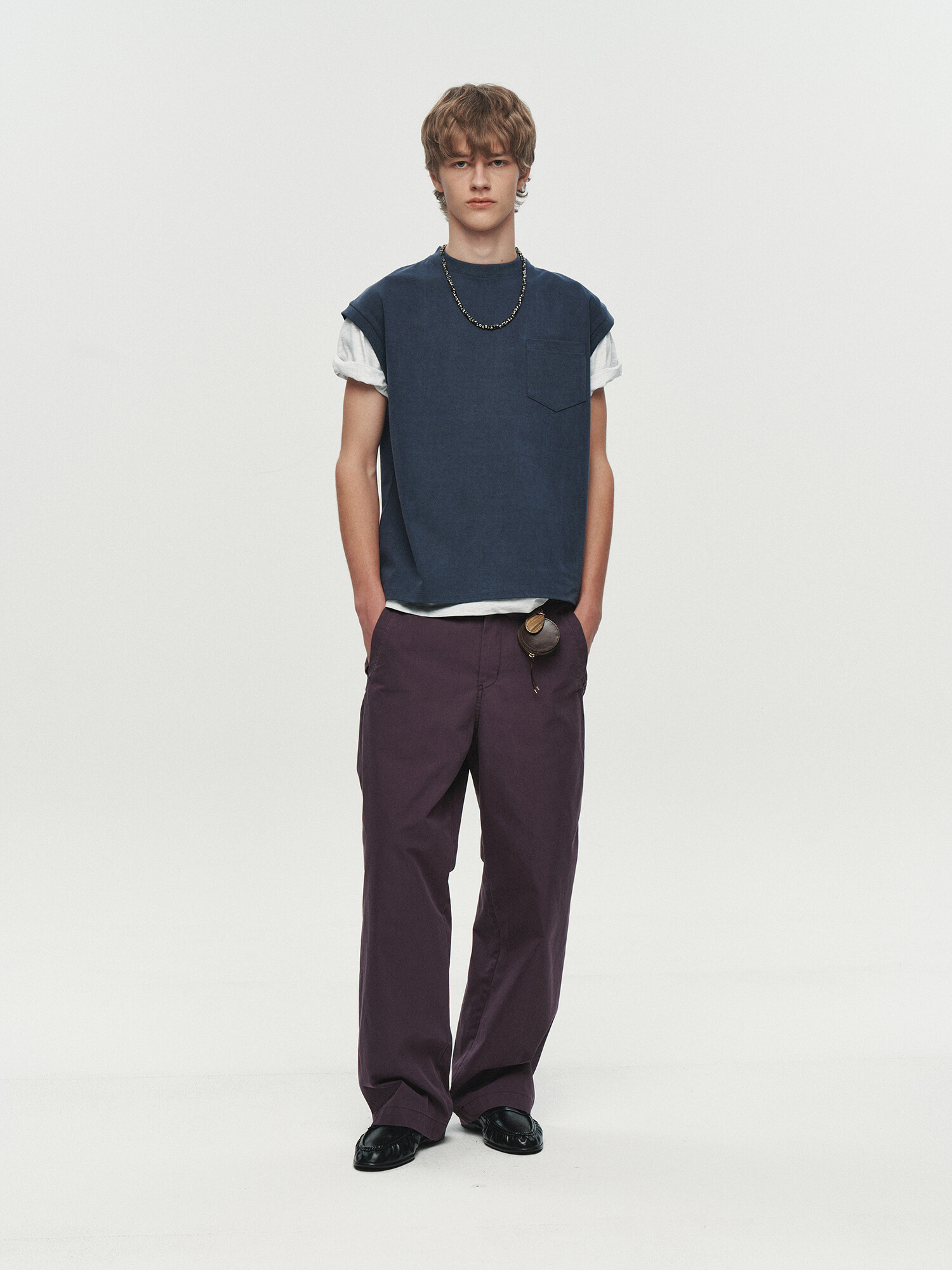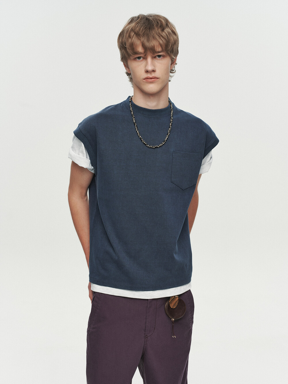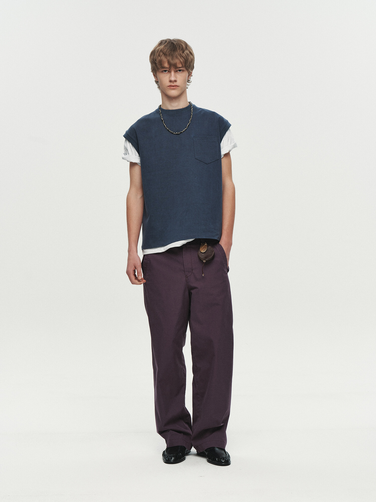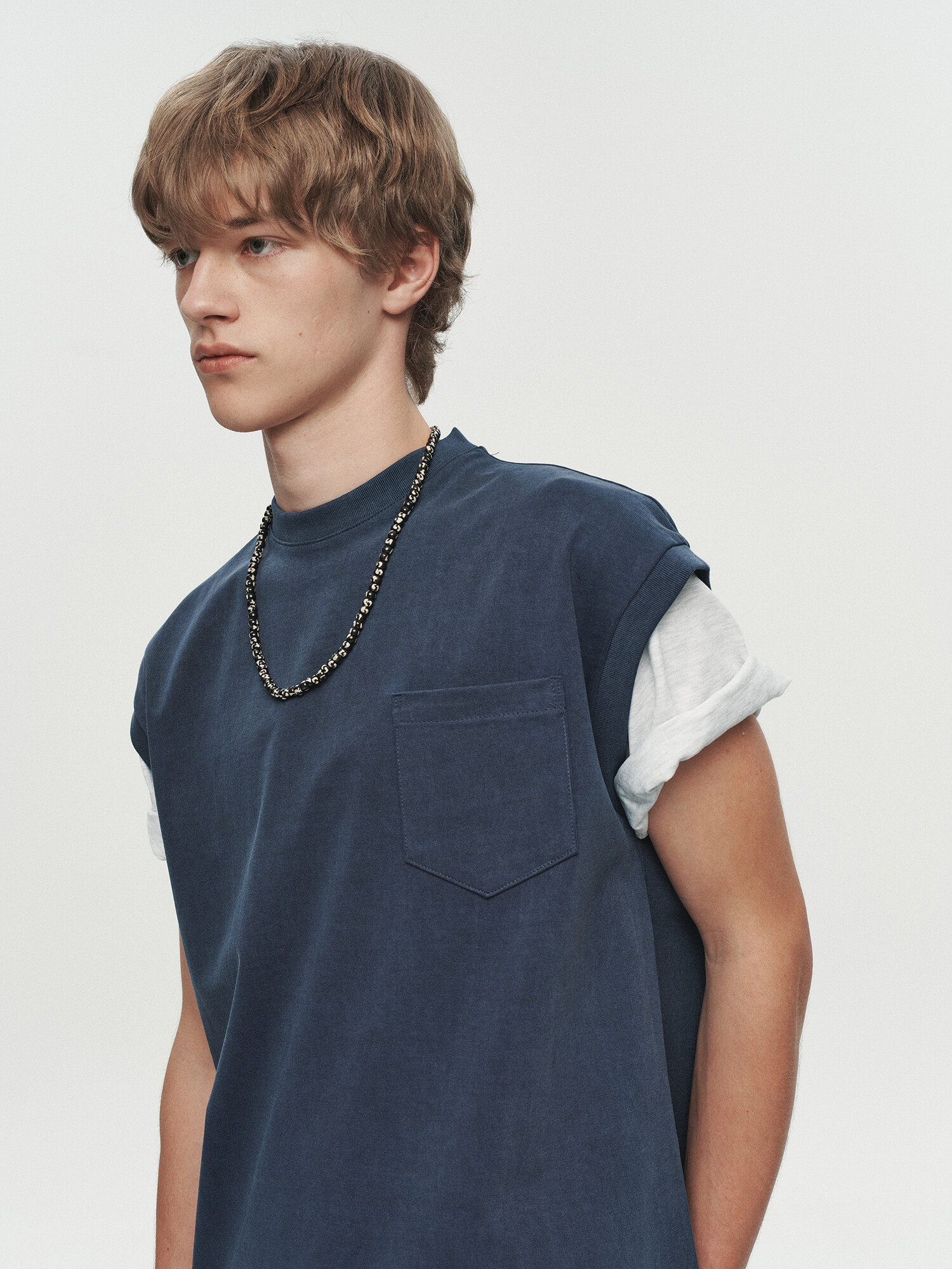 WASHED POCKET SLEEVELESS (NAVY)