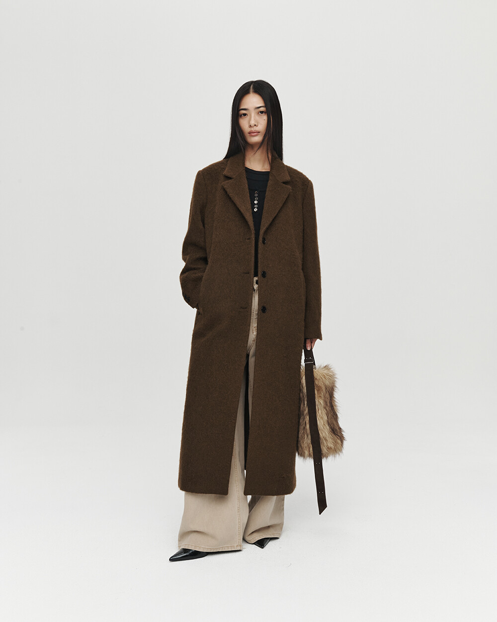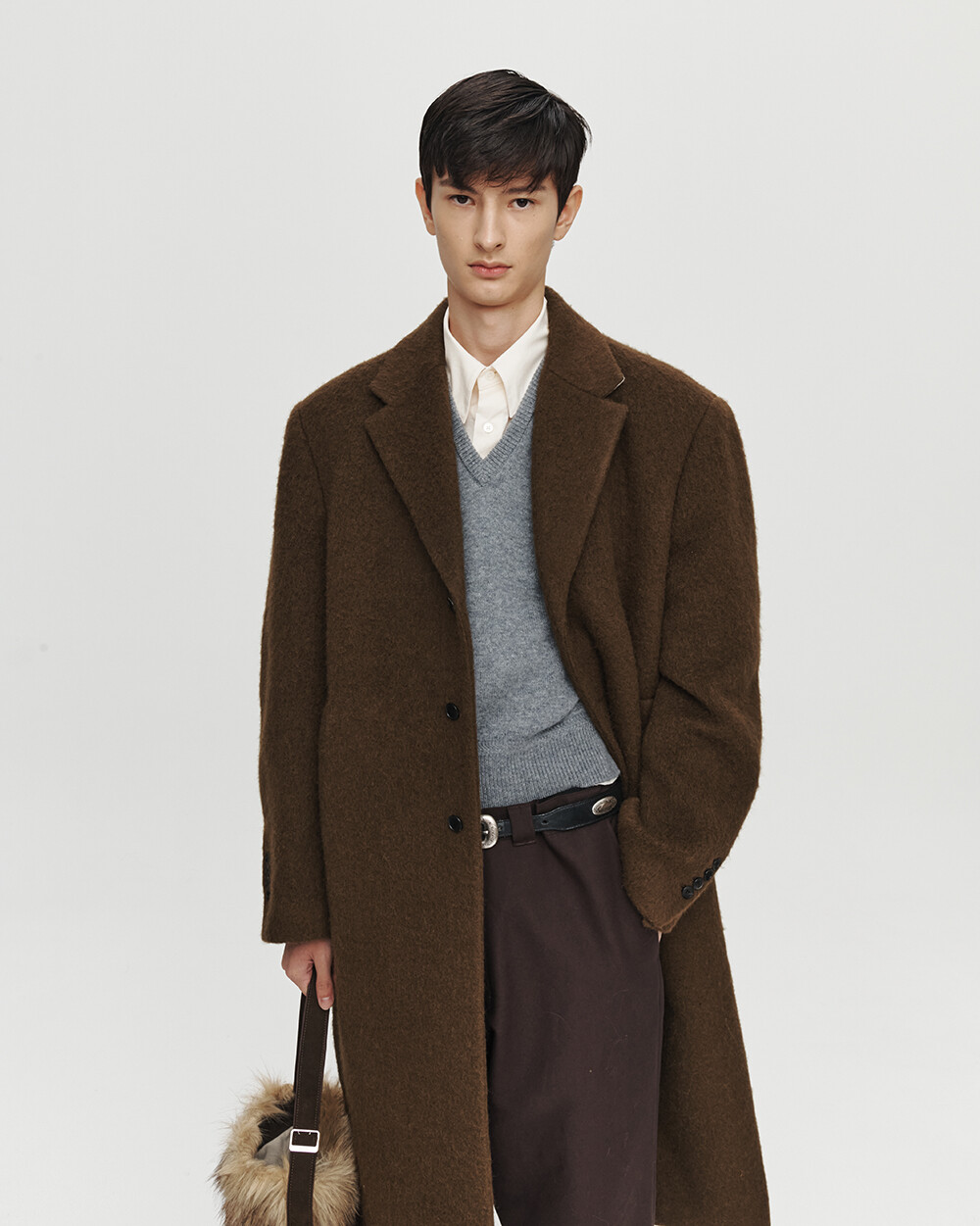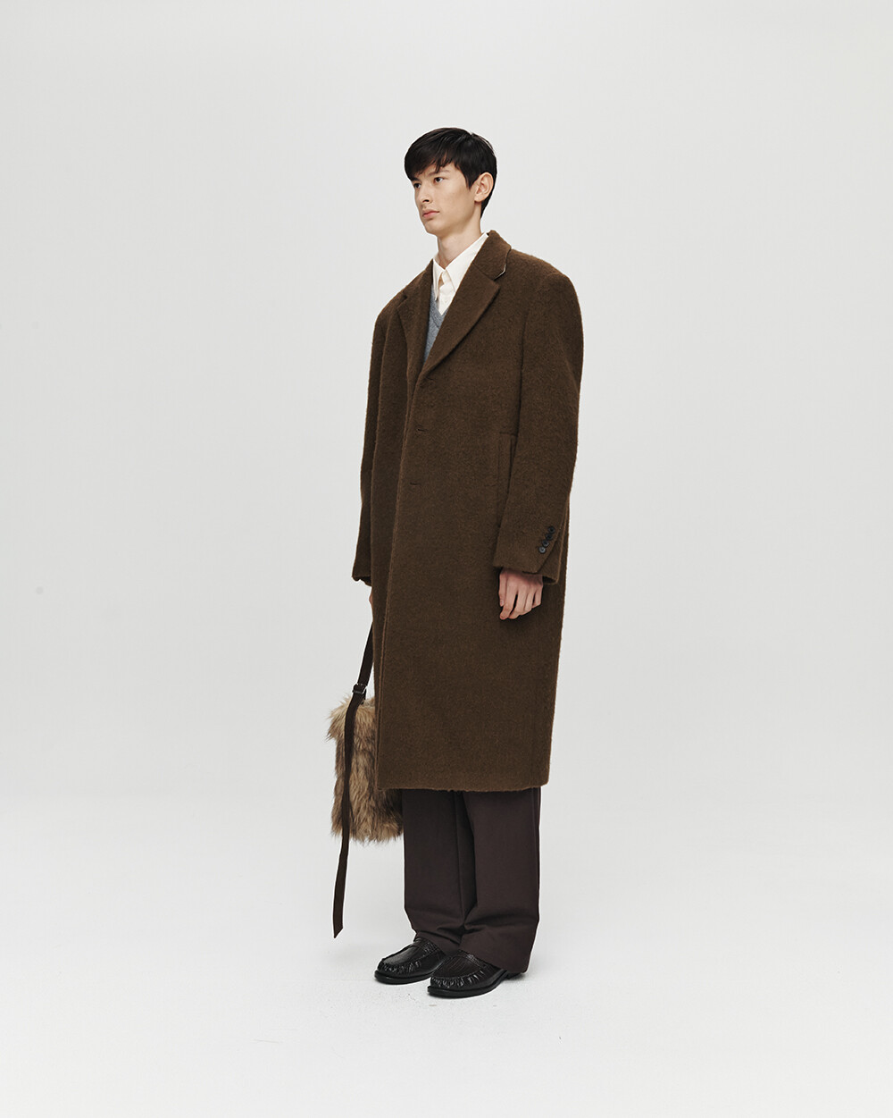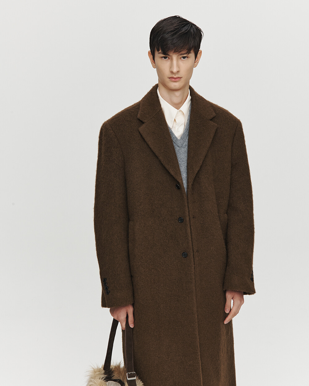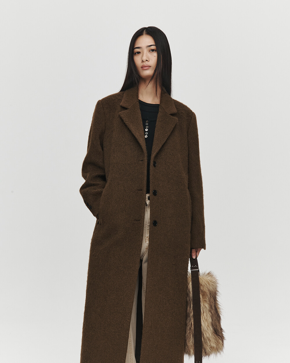 ALPACA LONG SINGLE COAT (KHAKI BROWN)