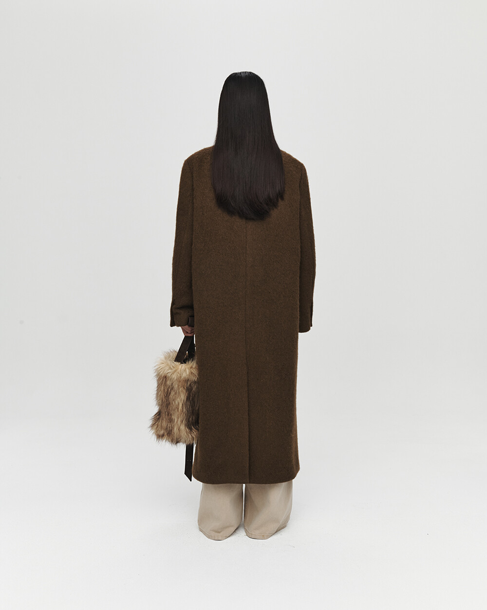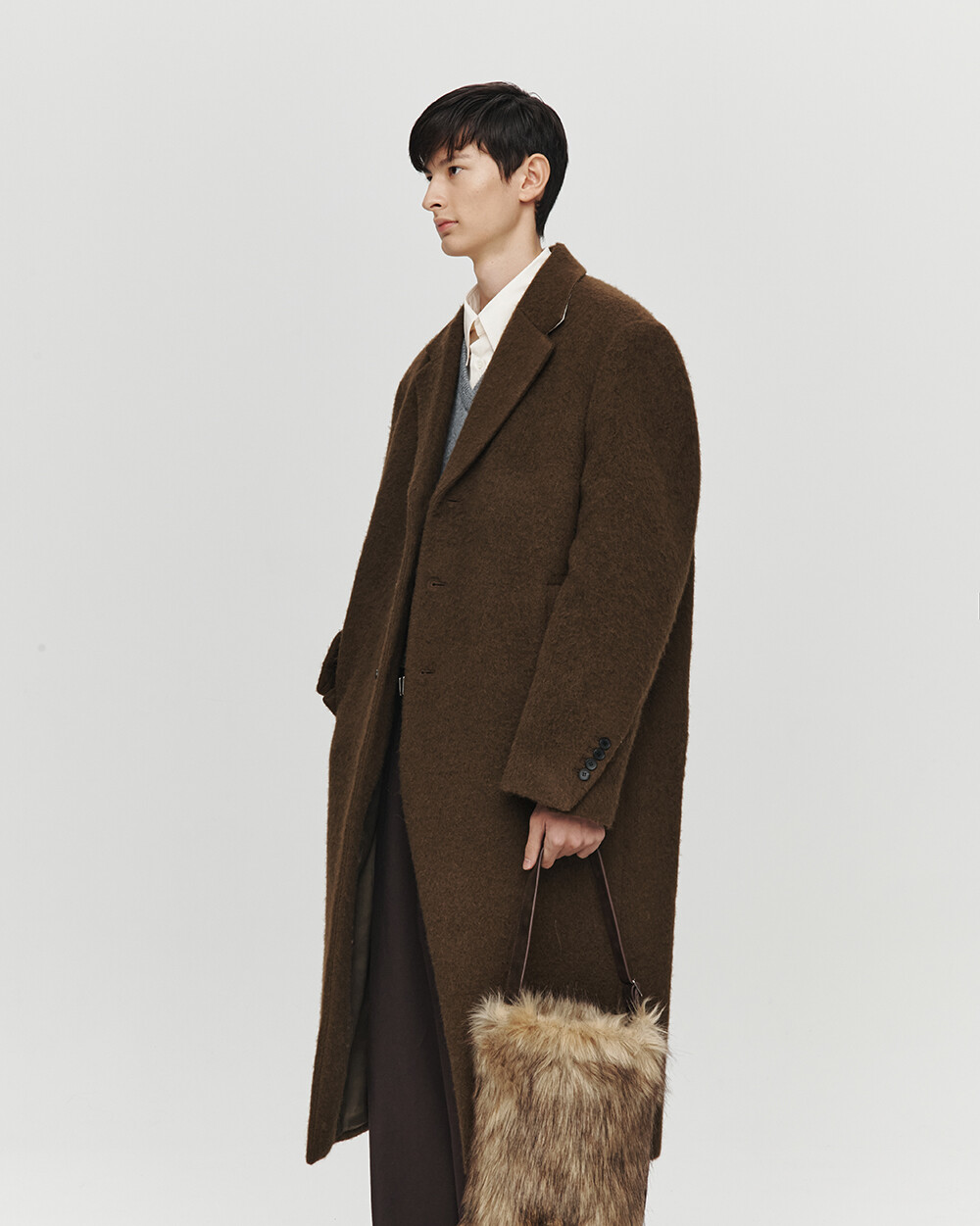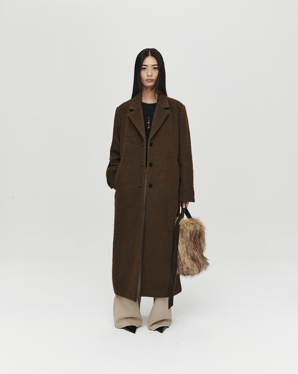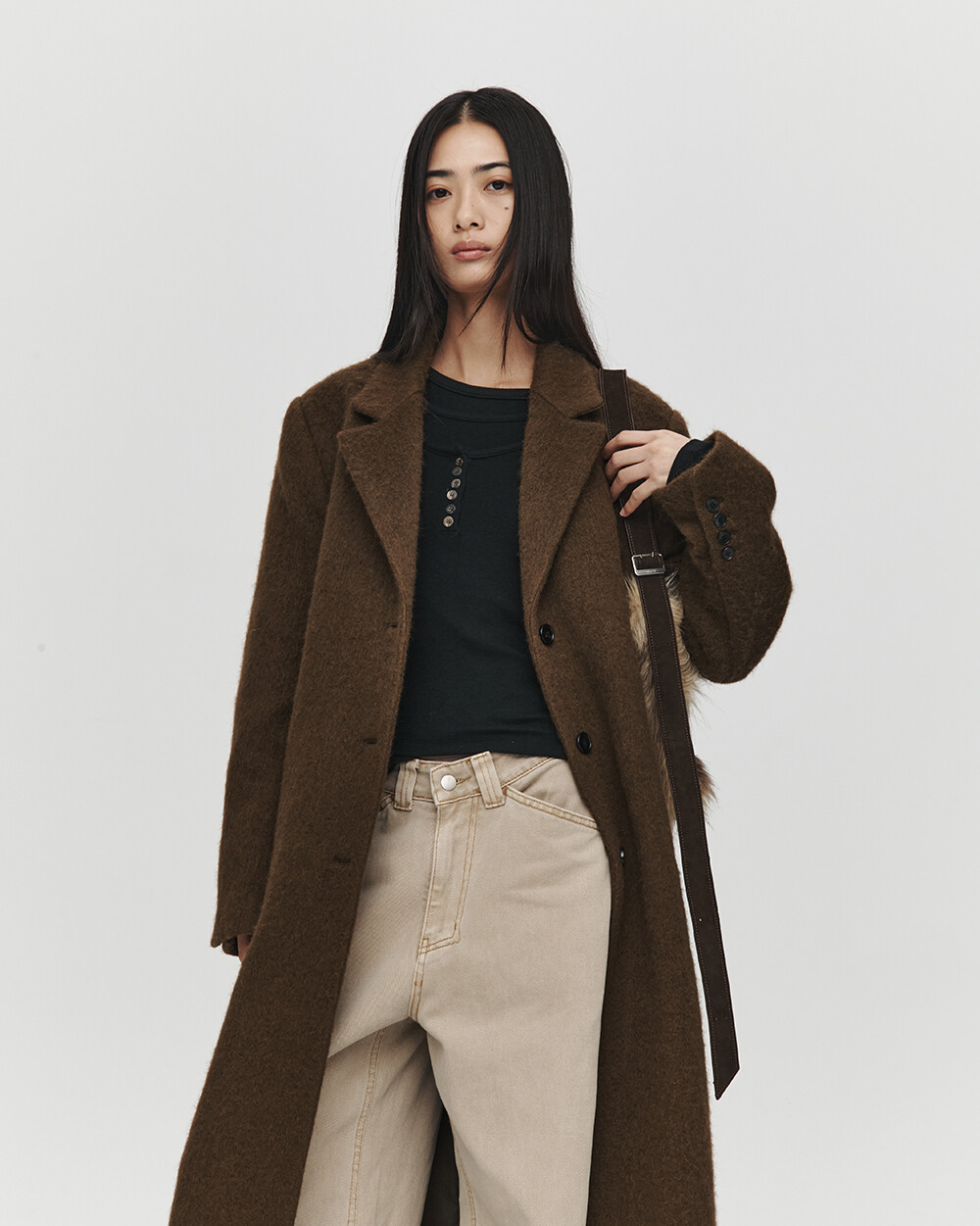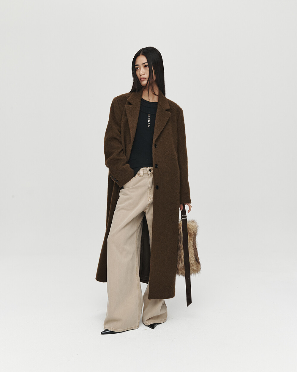 ALPACA LONG SINGLE COAT (KHAKI BROWN)
