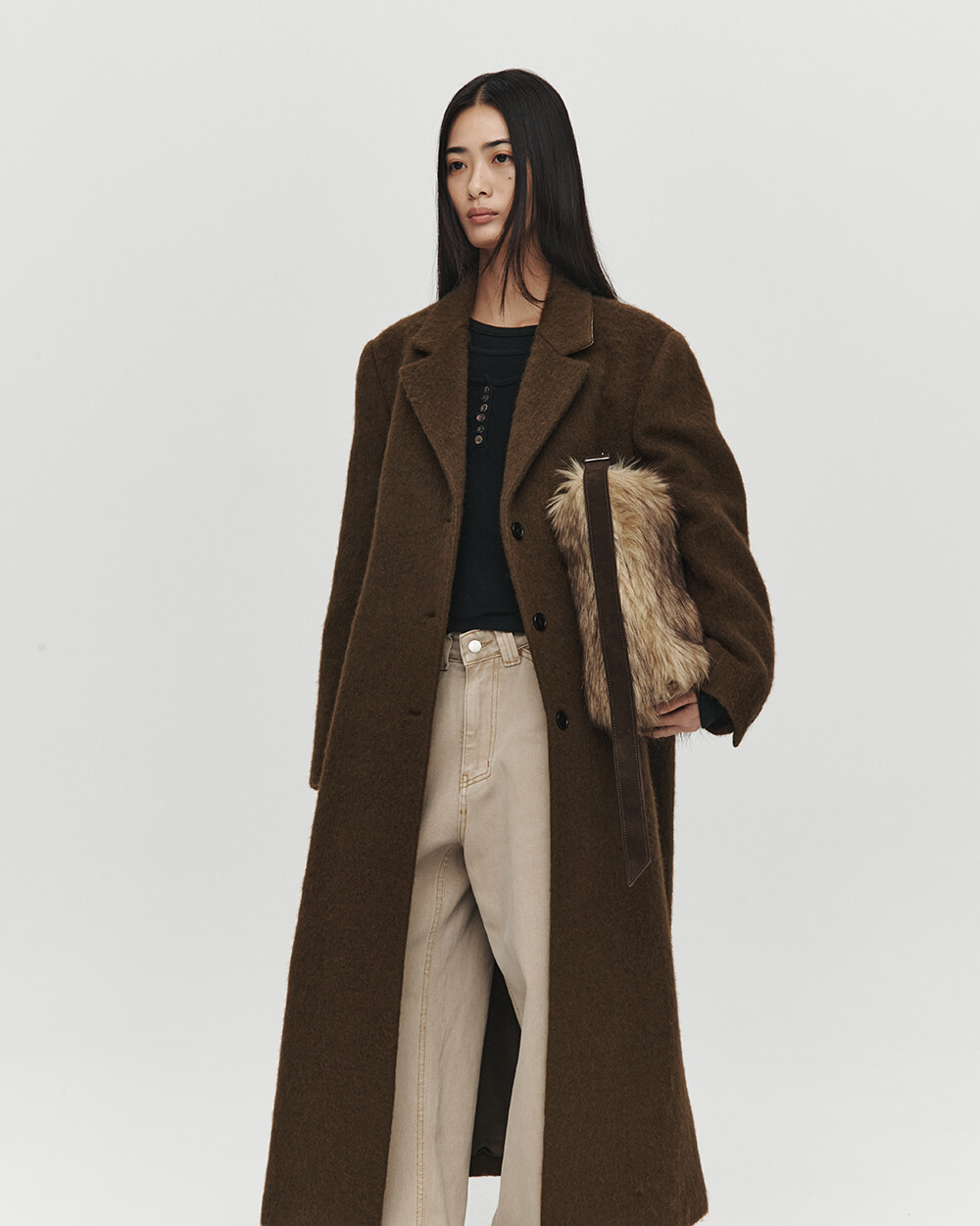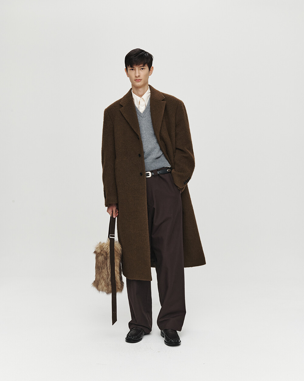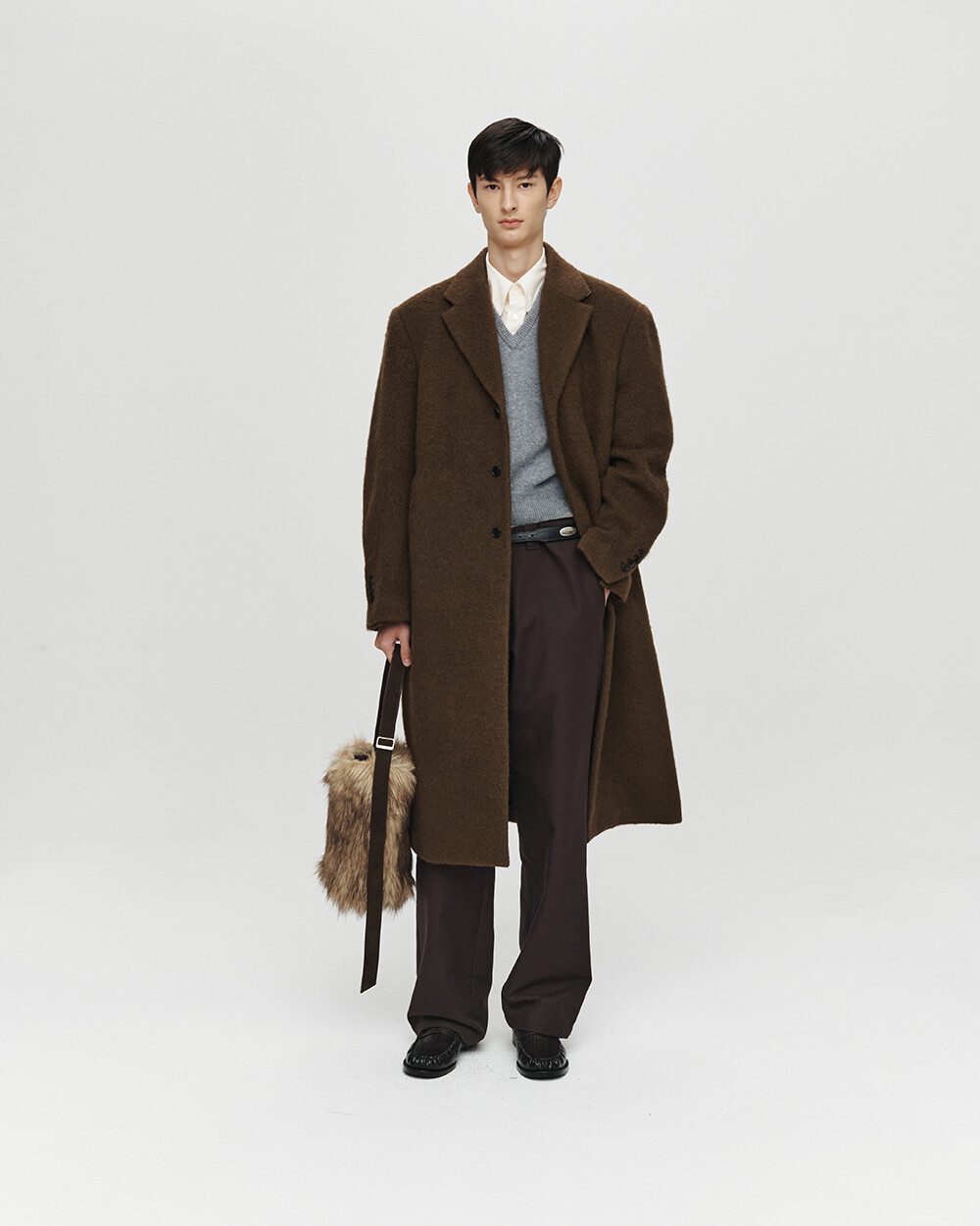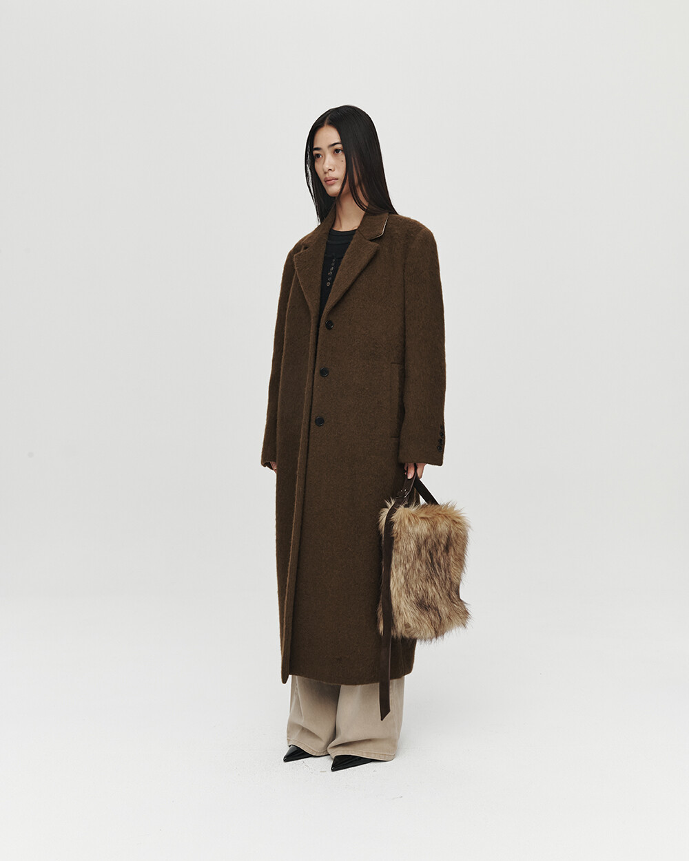 ALPACA LONG SINGLE COAT (KHAKI BROWN)