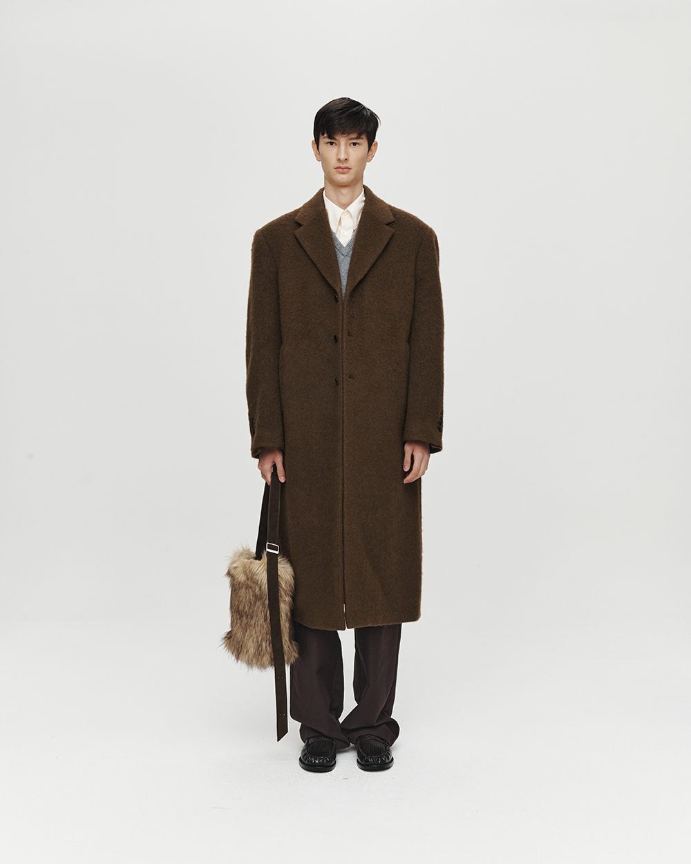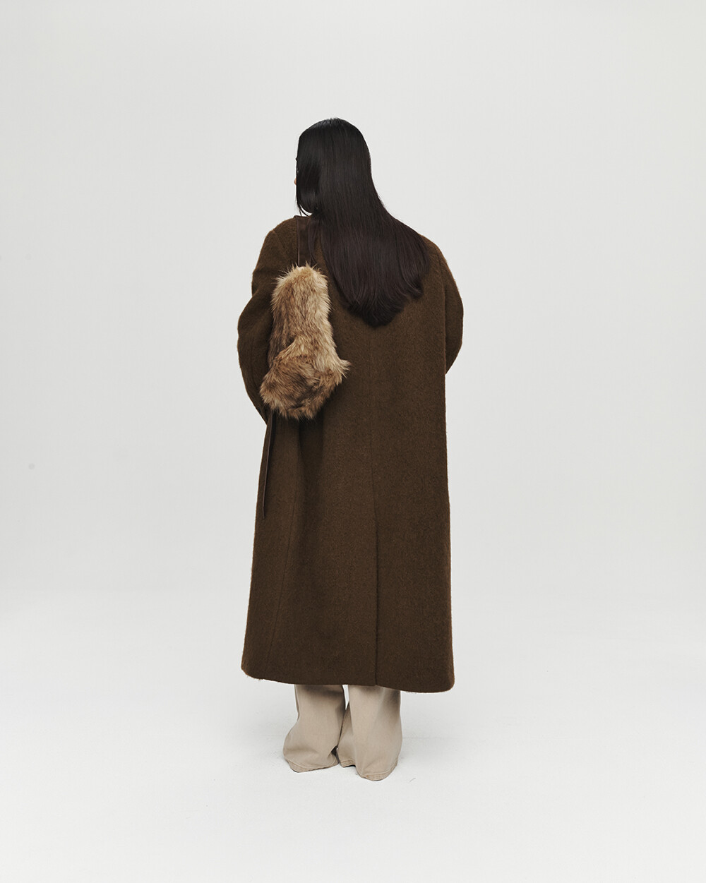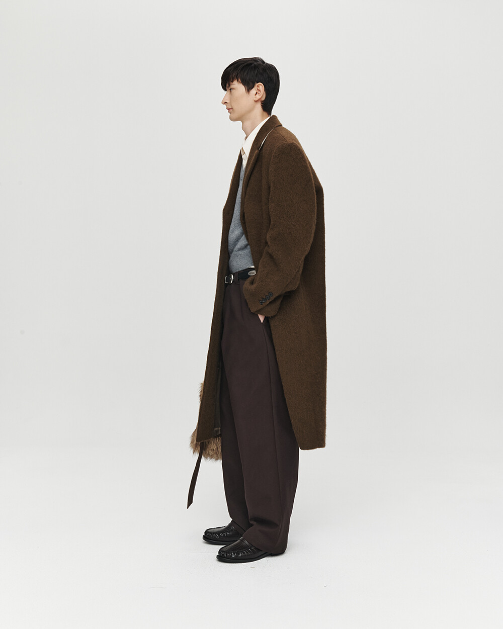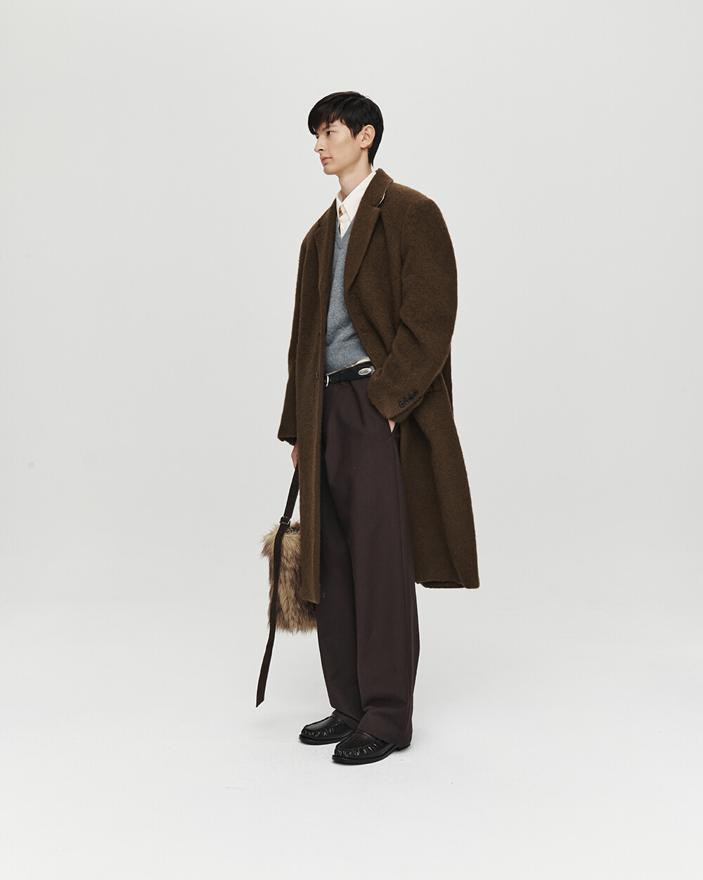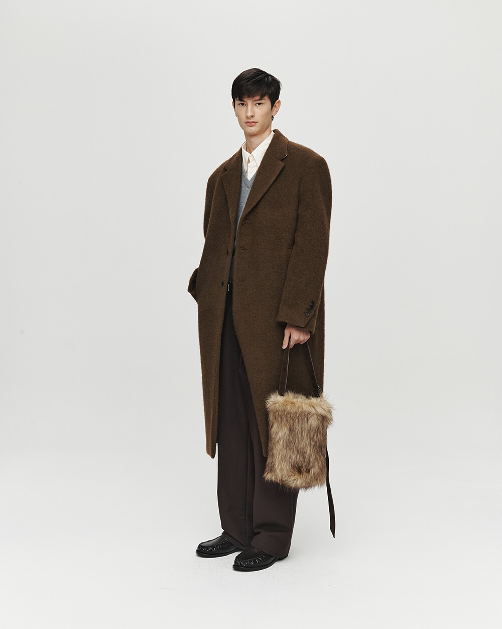 ALPACA LONG SINGLE COAT (KHAKI BROWN)