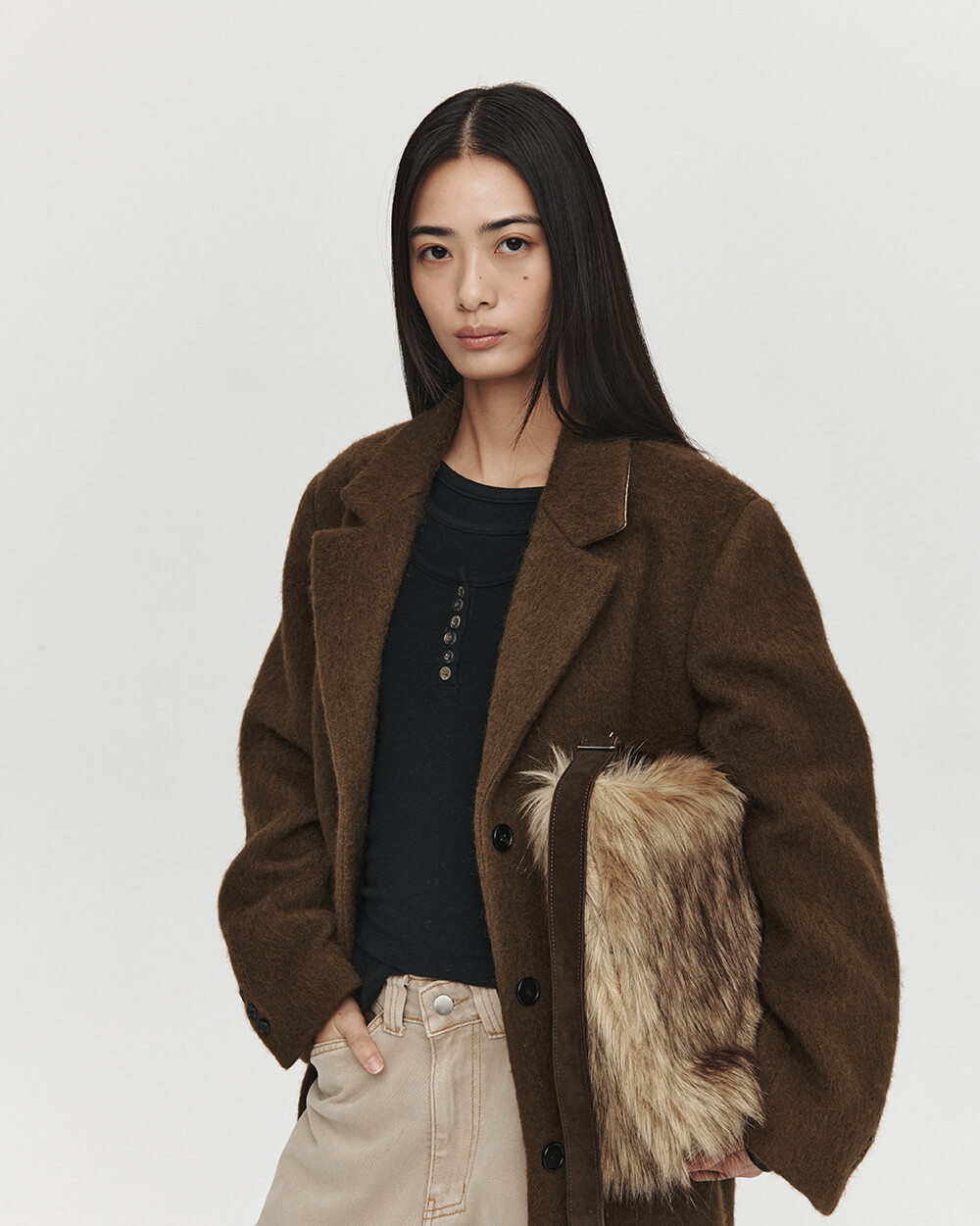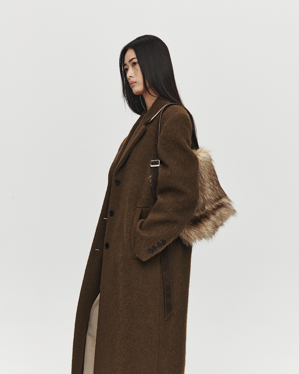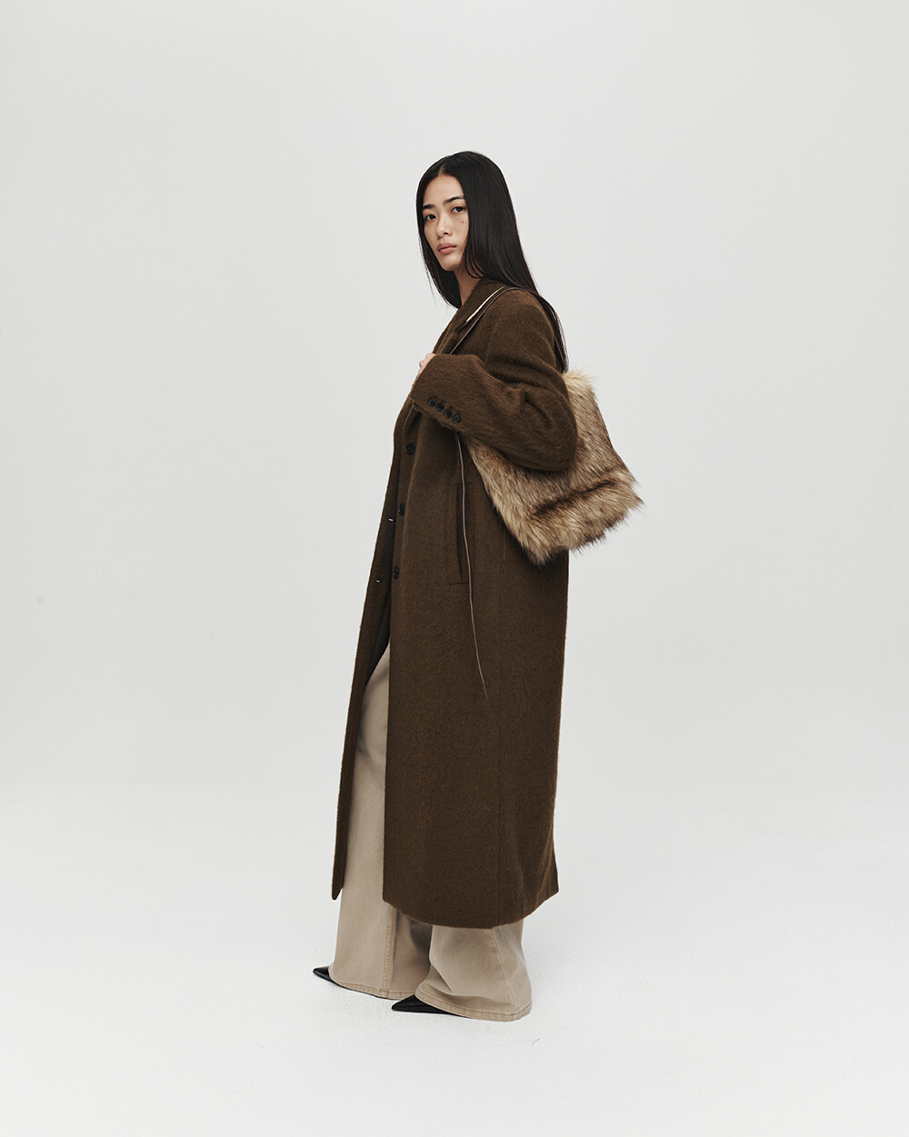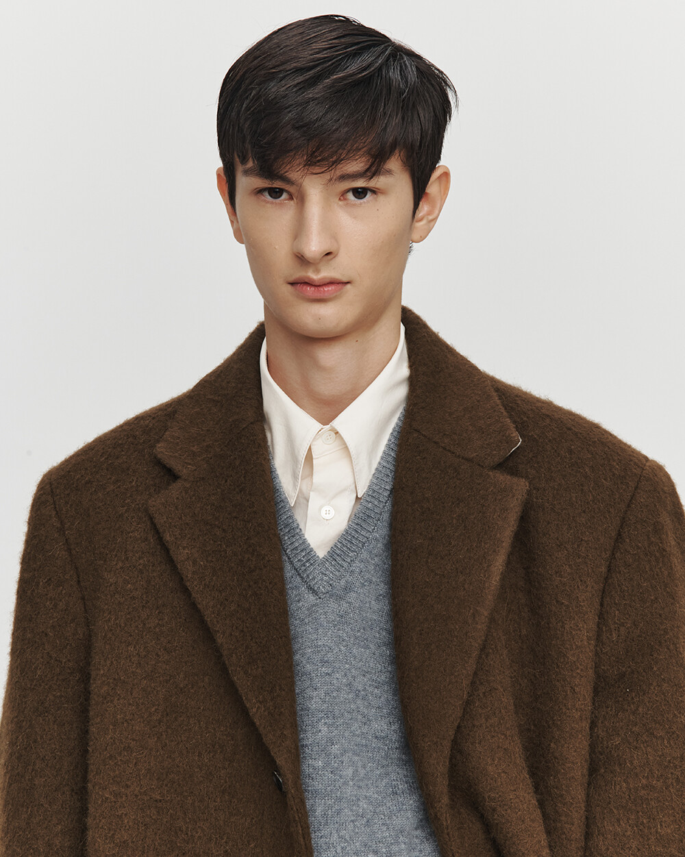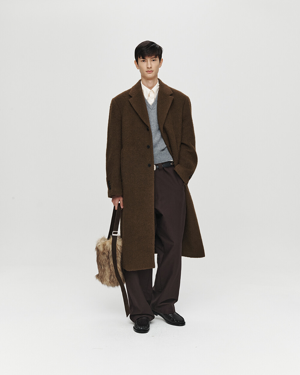 ALPACA LONG SINGLE COAT (KHAKI BROWN)