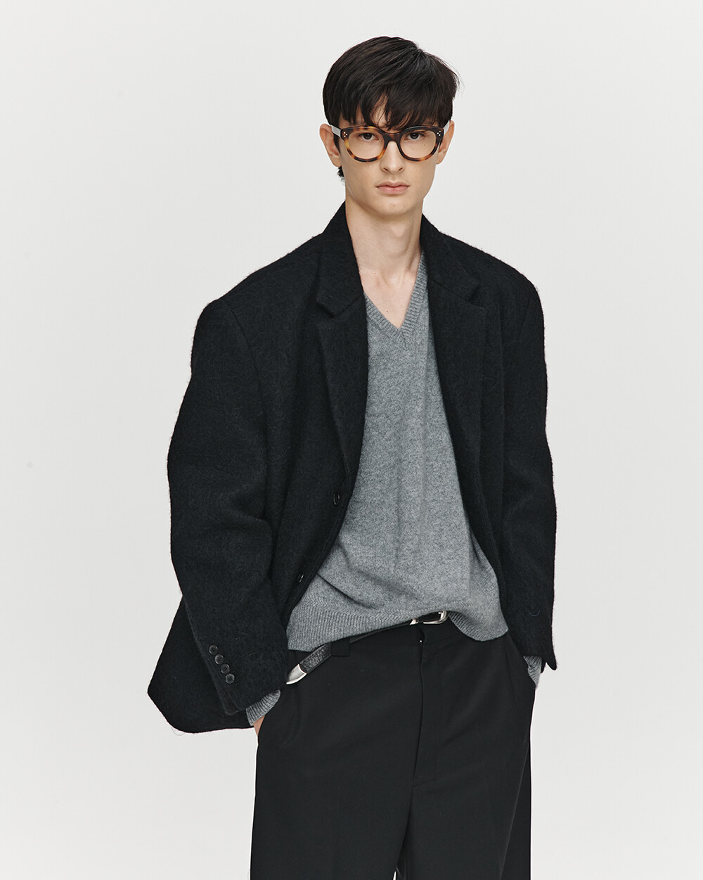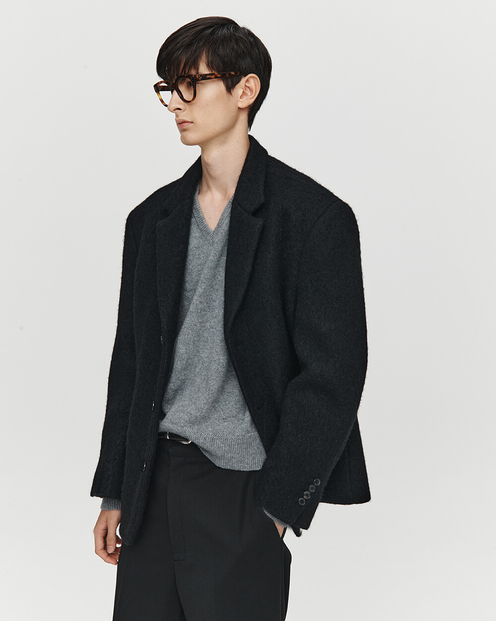 HET SQUARE WOOL SINGLE JACKET (BLACK)