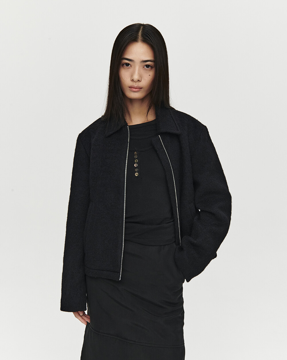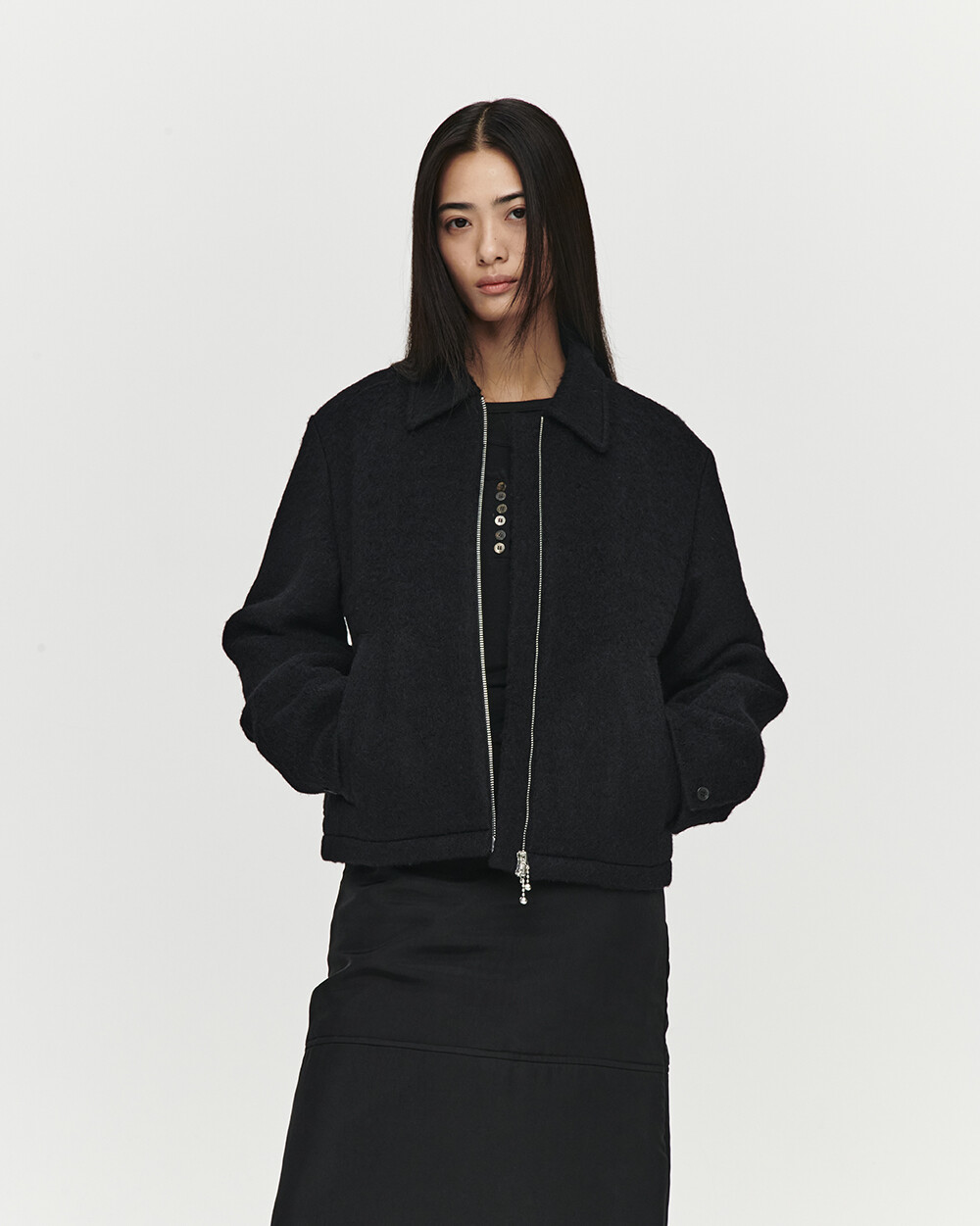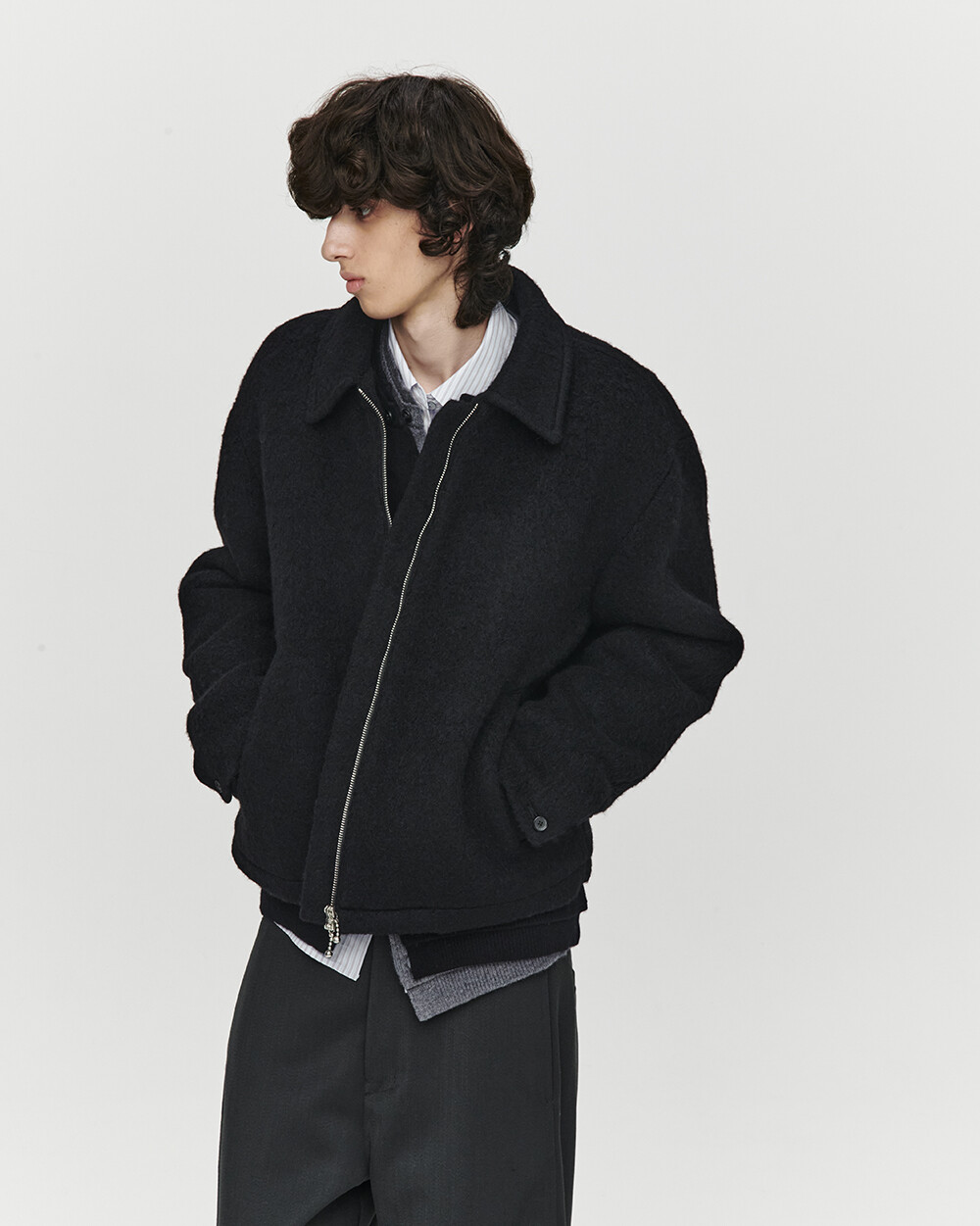 - 알파카 울 소재로 제작된 세미오버핏 싱글 재킷