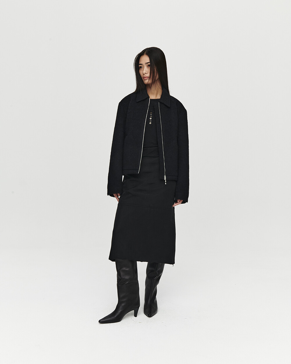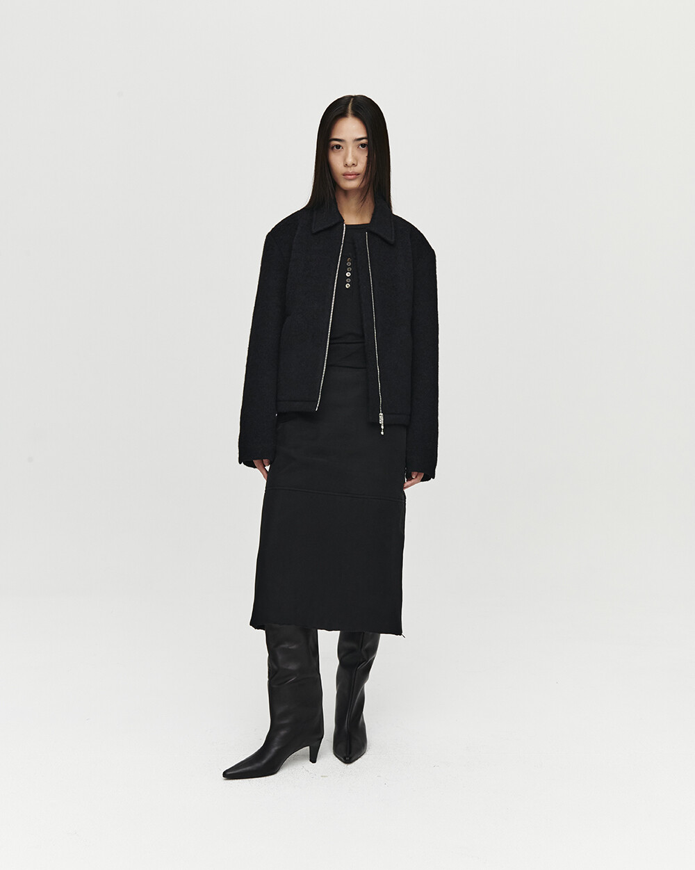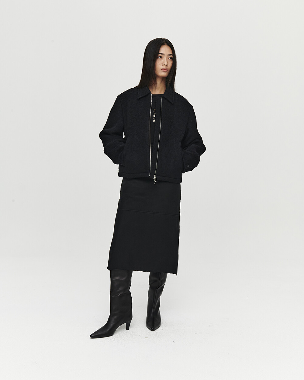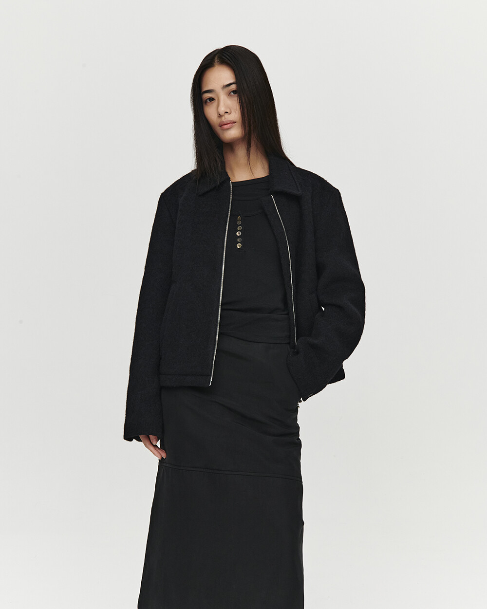 - 알파카 울 소재로 제작된 세미오버핏 싱글 재킷