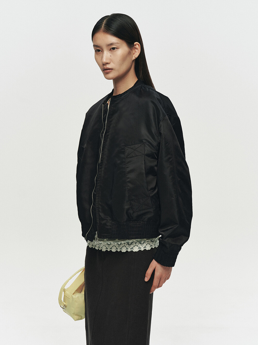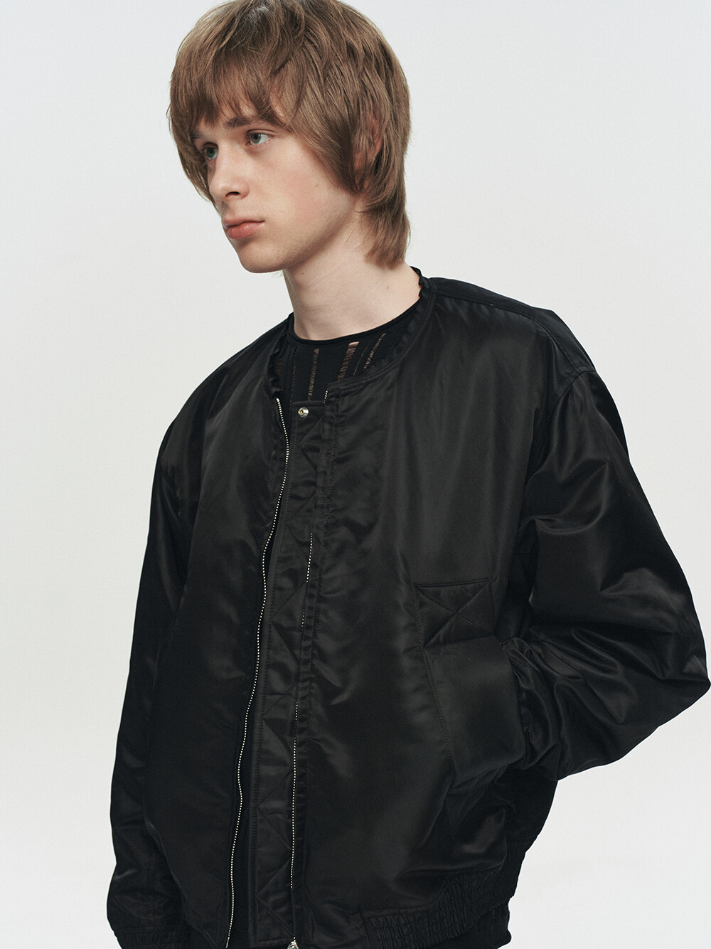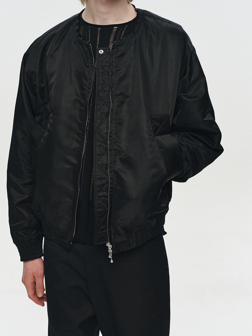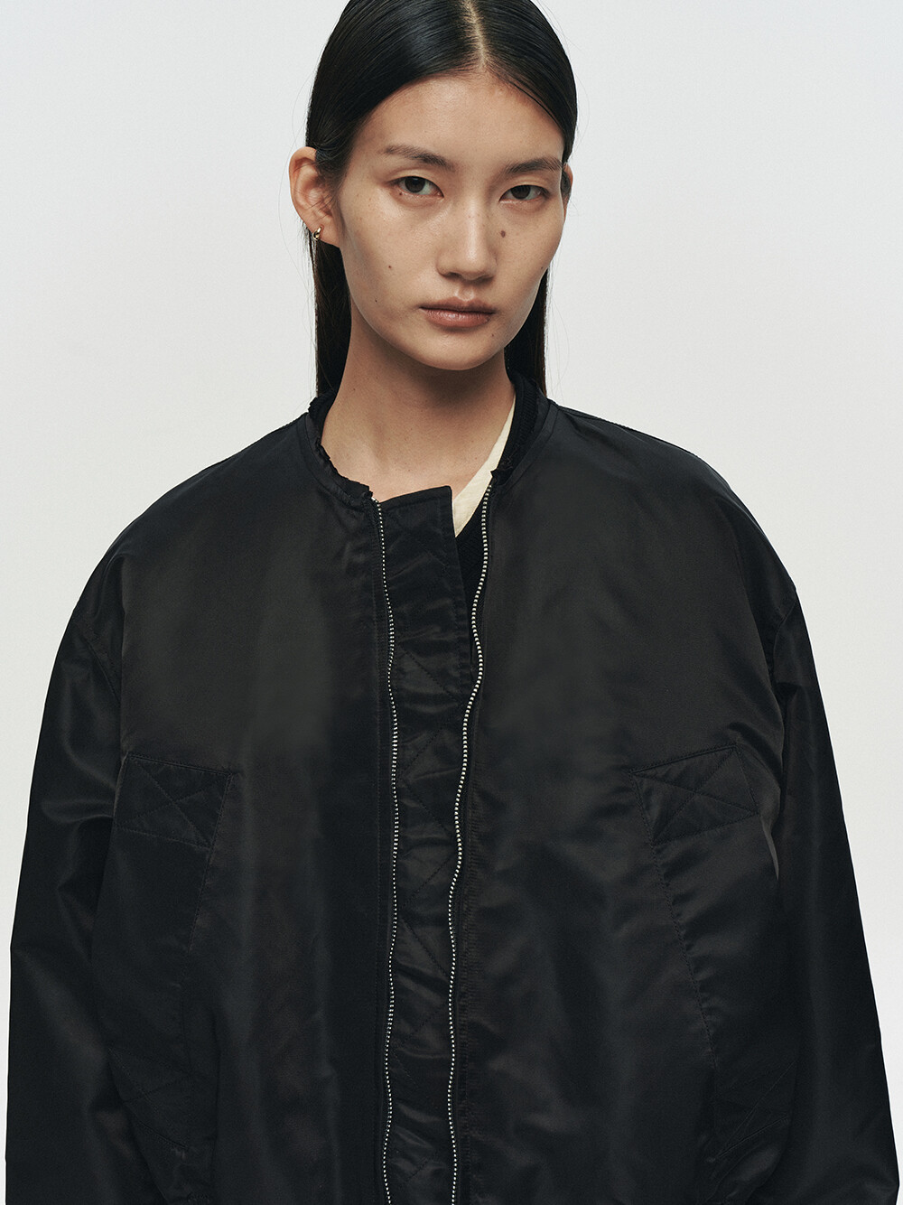 FRAME COLLARLESS BOMBER JACKET (BLACK)