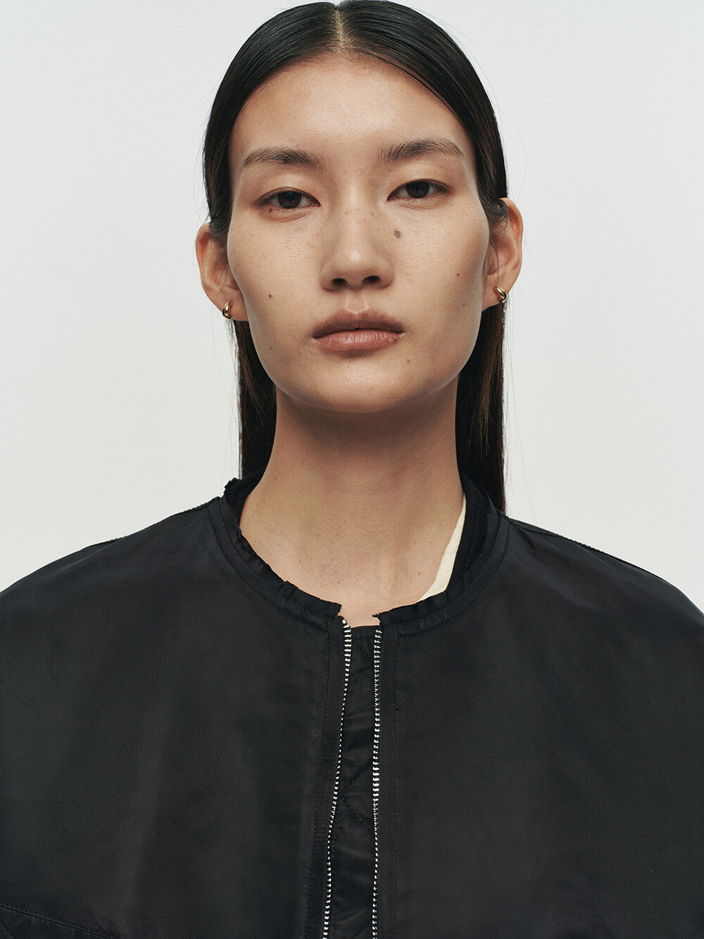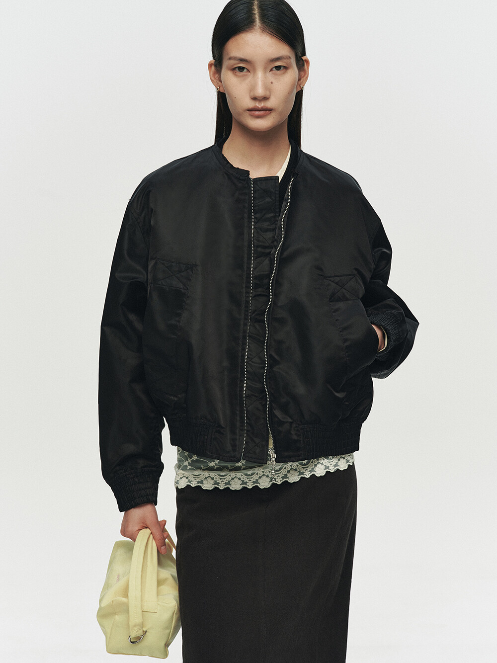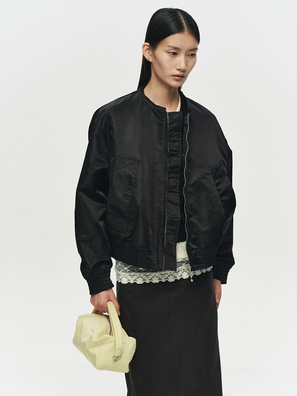 FRAME COLLARLESS BOMBER JACKET (BLACK)