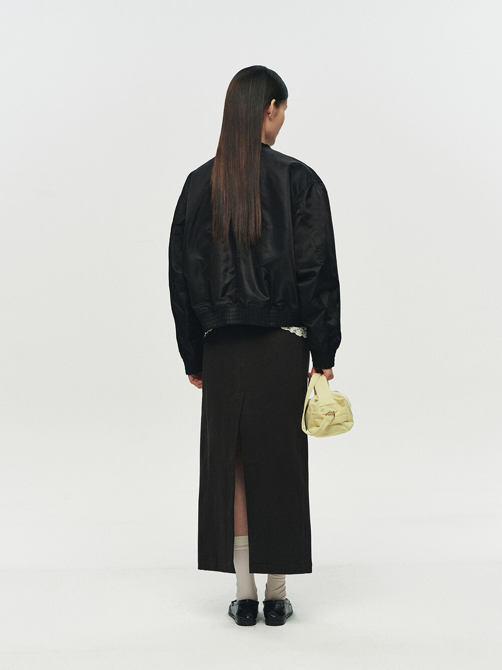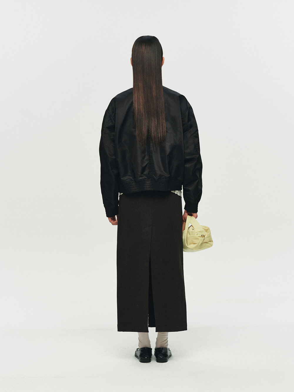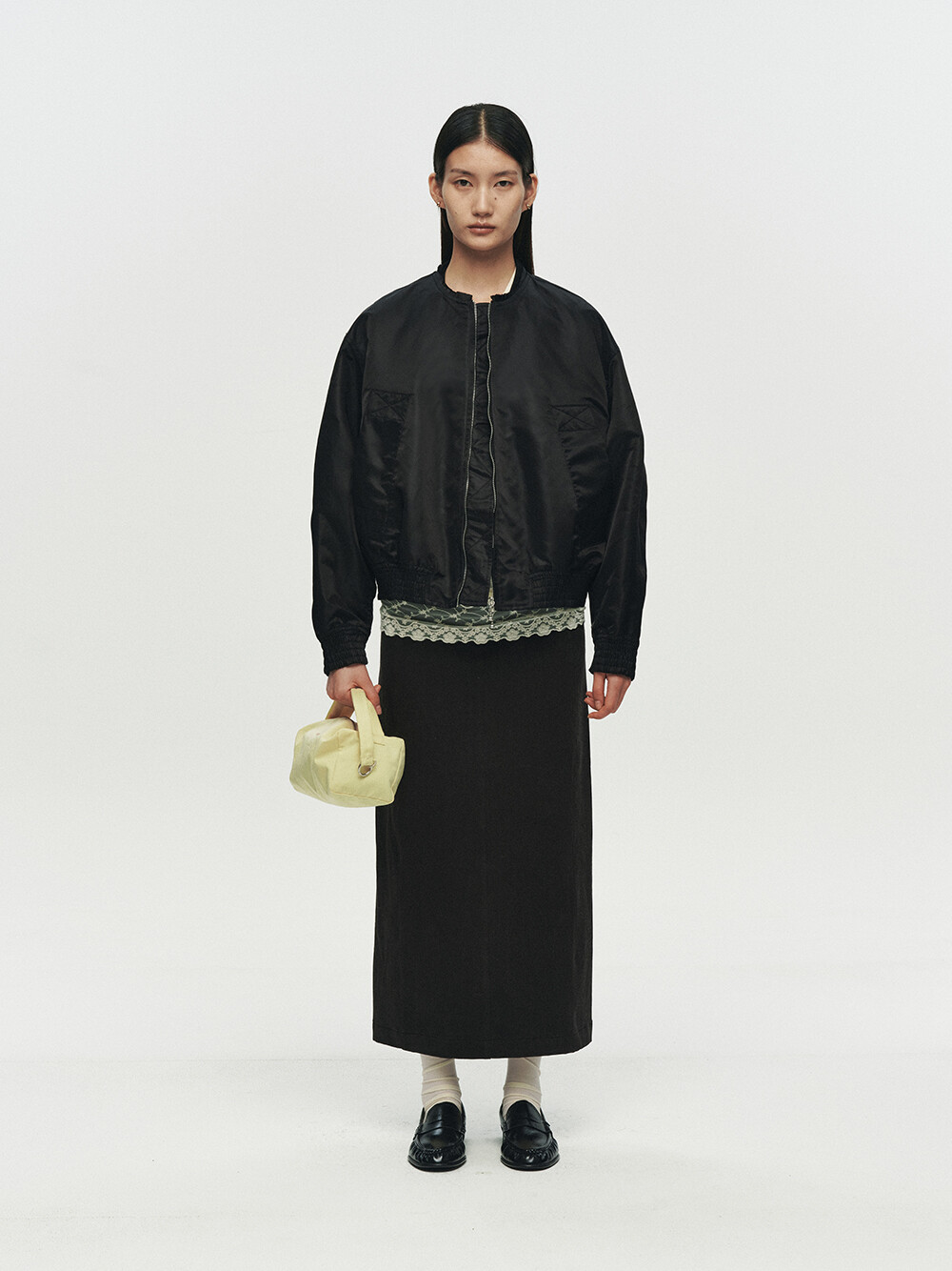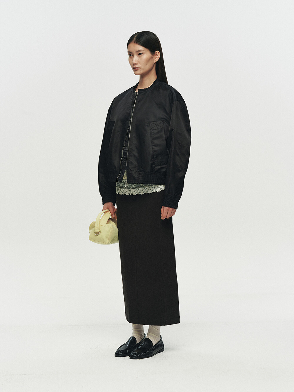 FRAME COLLARLESS BOMBER JACKET (BLACK)