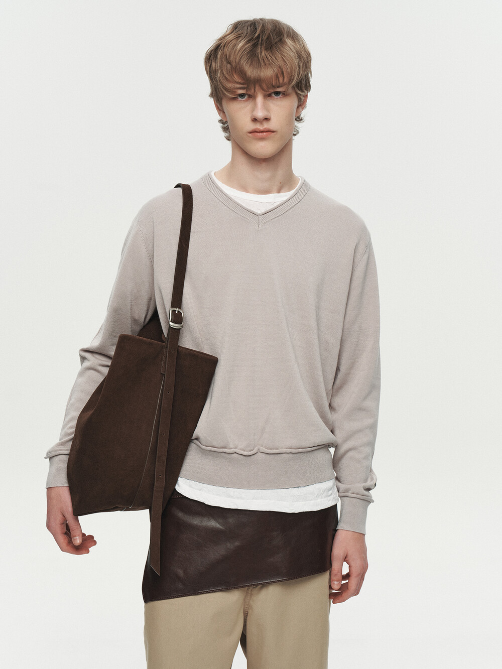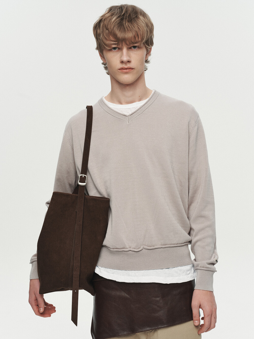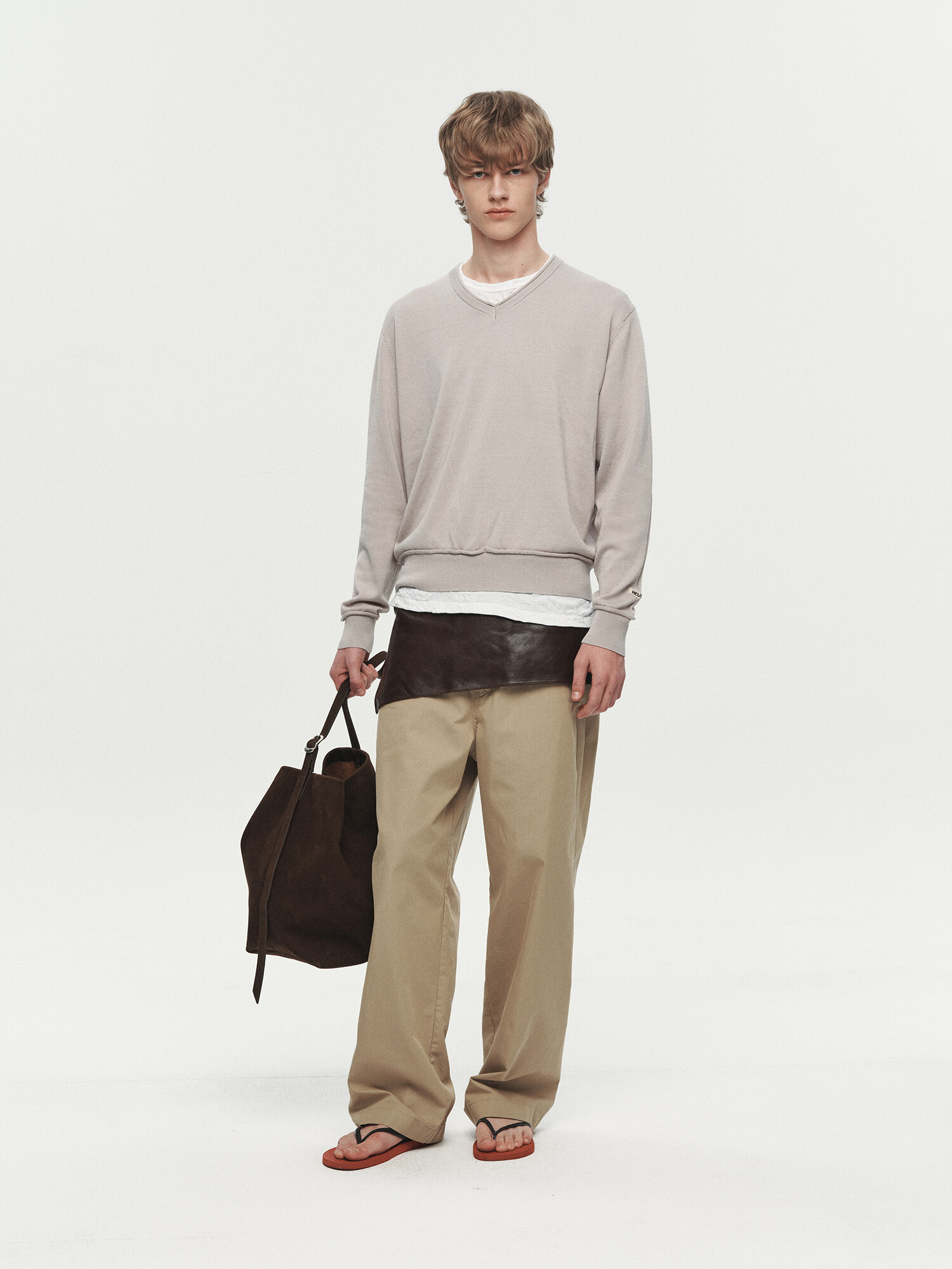 NIEL COTTON V-NECK KNIT (L/GREY)
