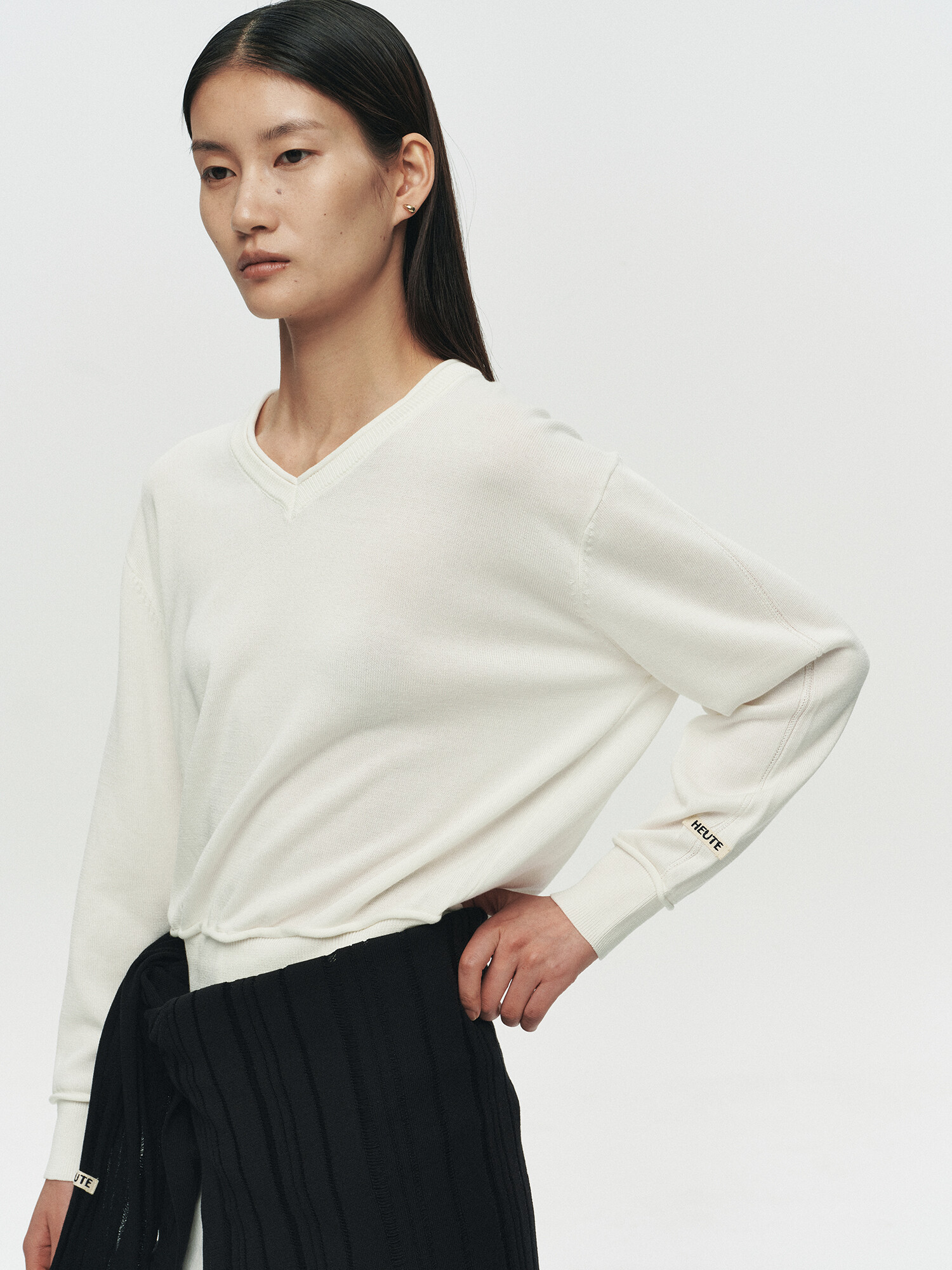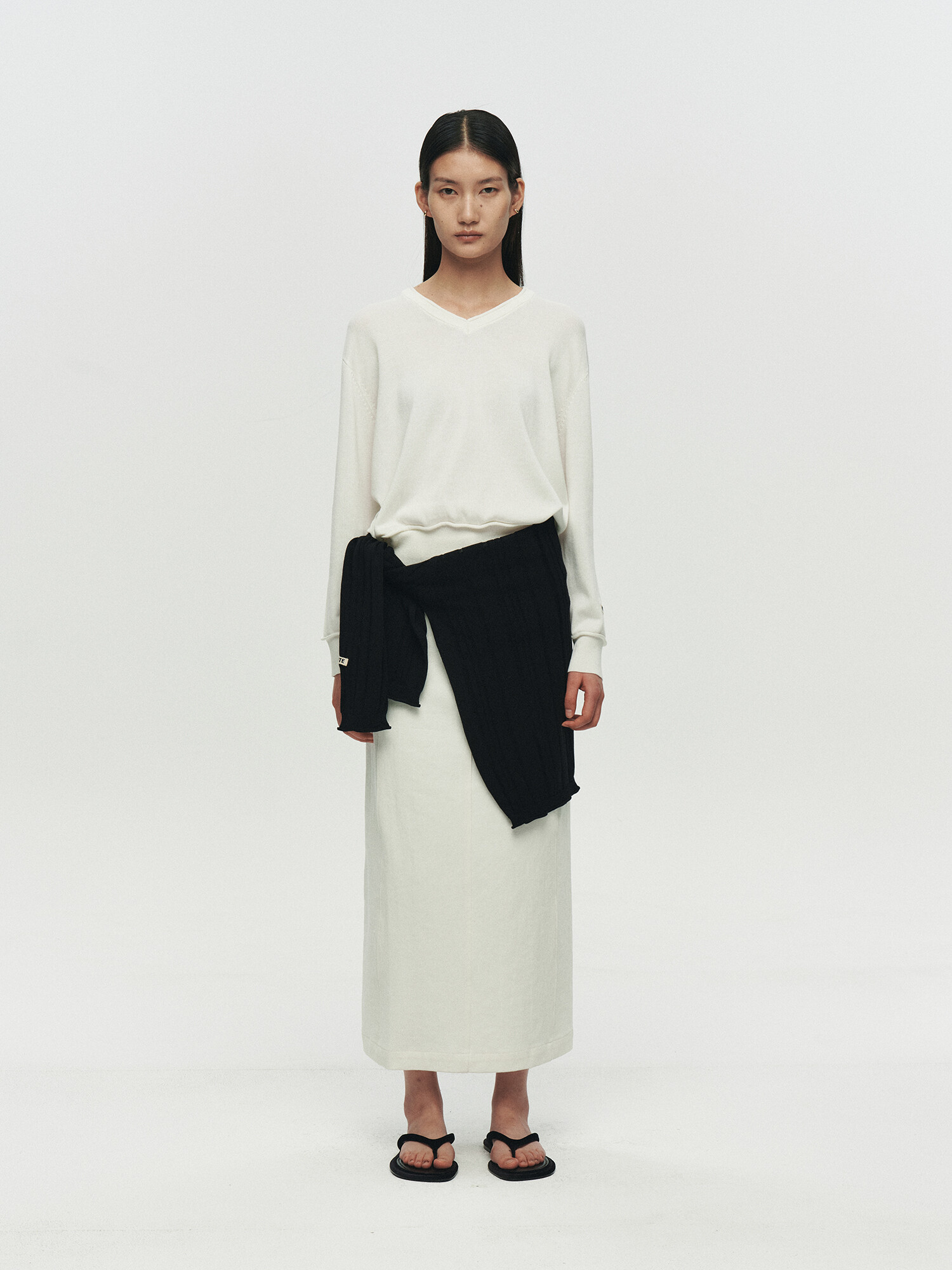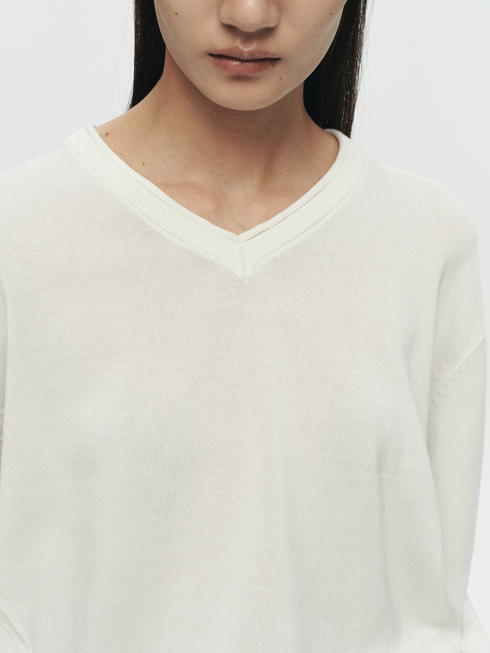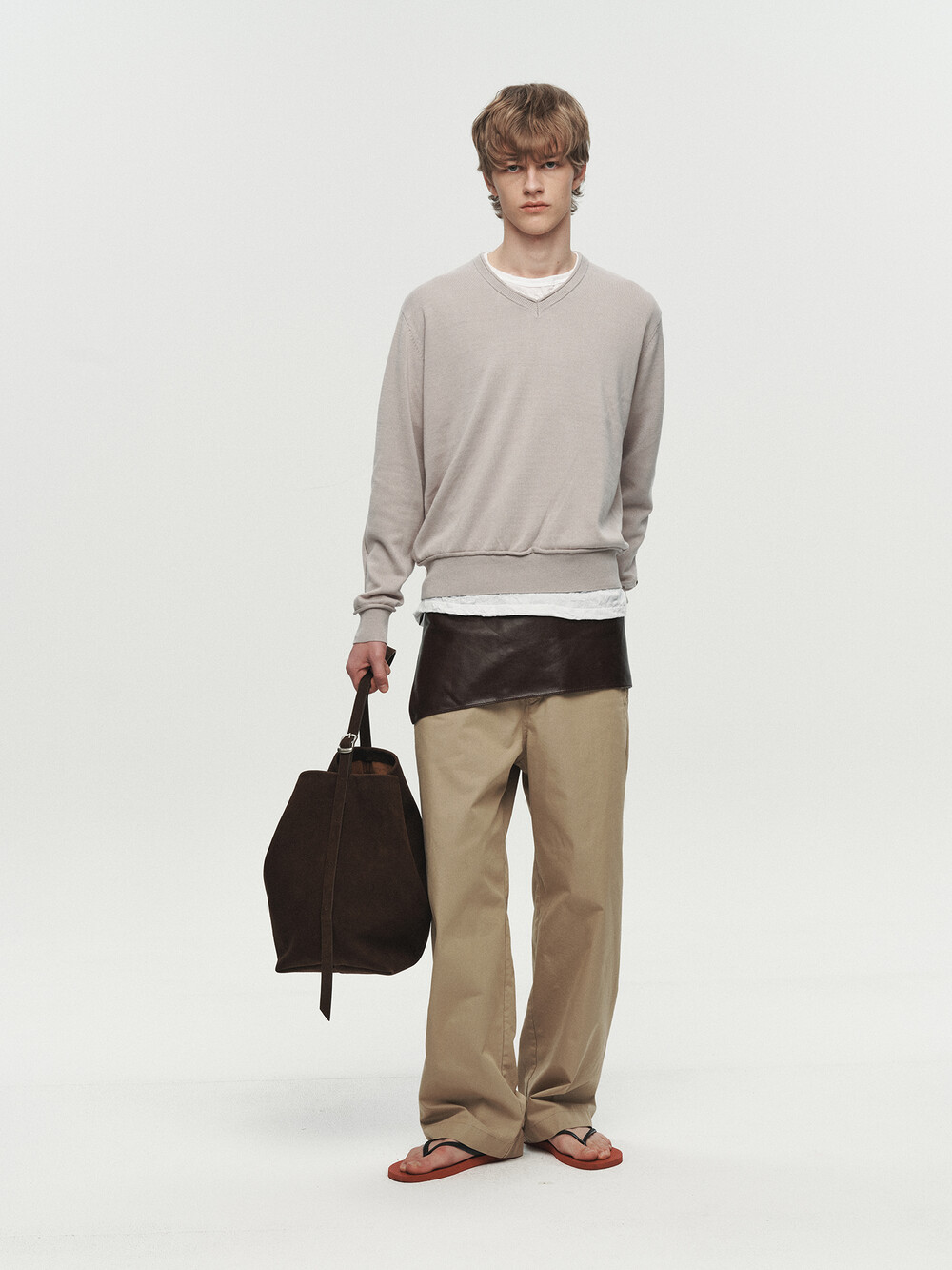 NIEL COTTON V-NECK KNIT (L/GREY)