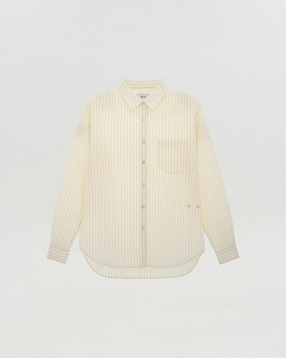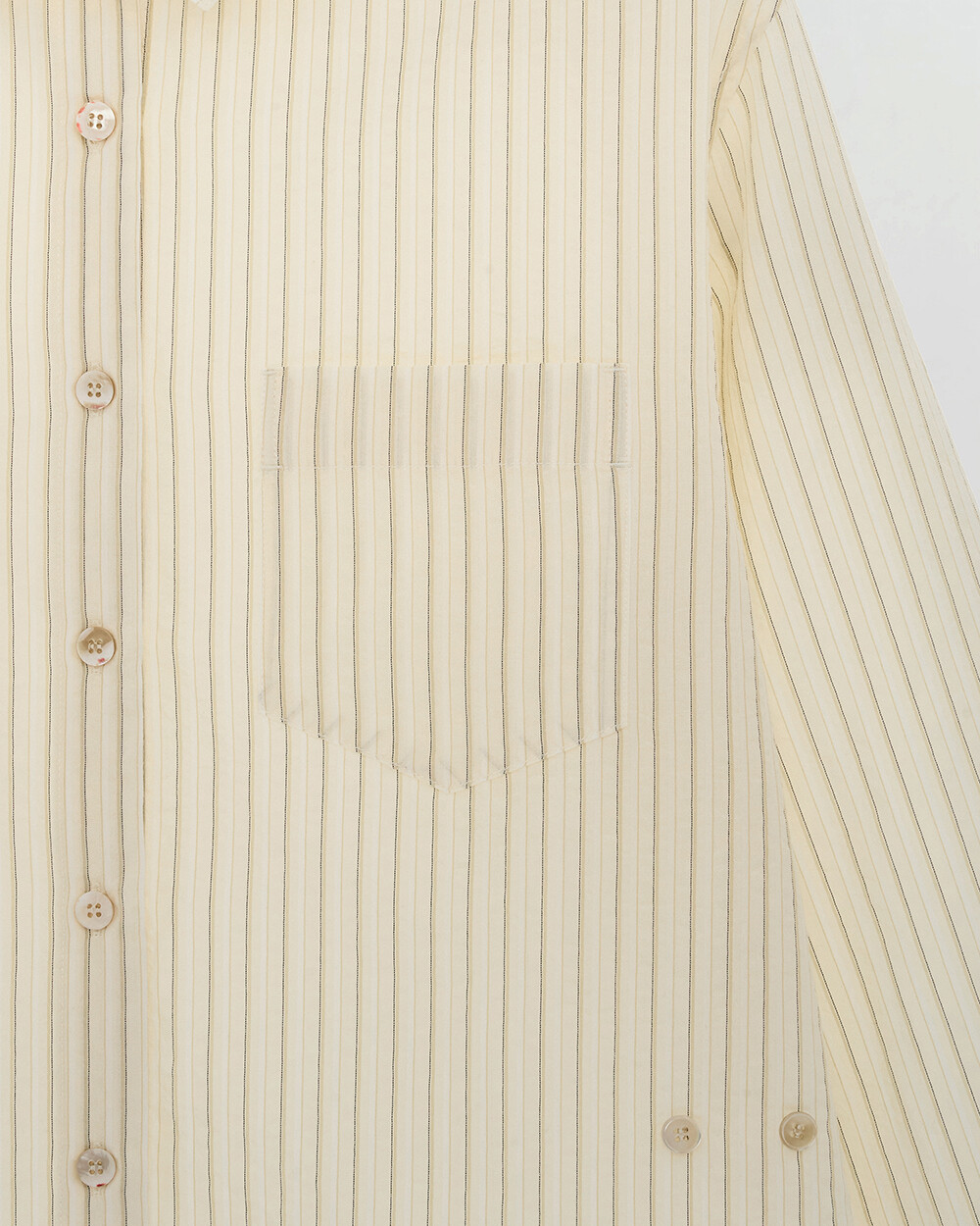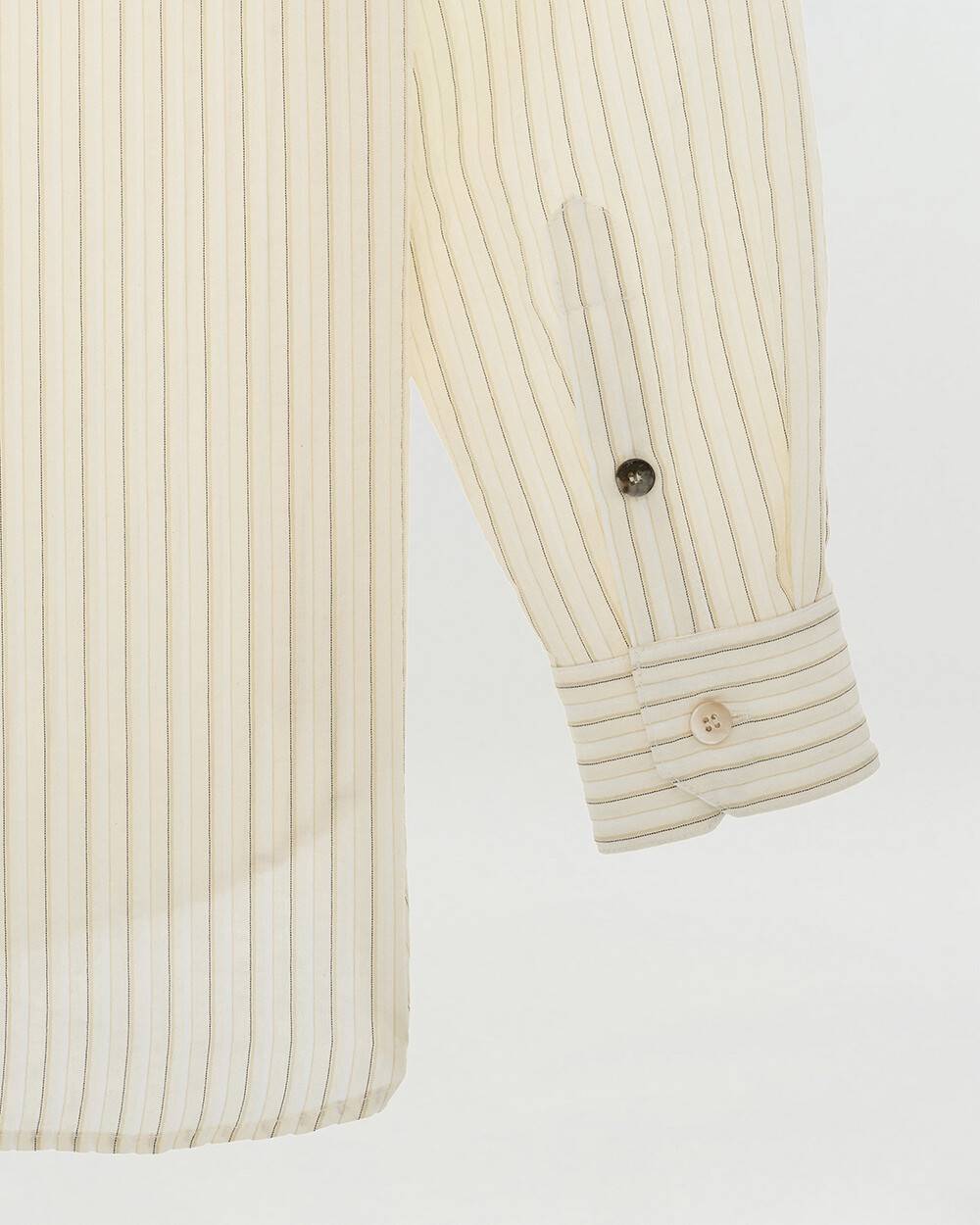 - 고밀도 면 소재로 제작한 오버핏 스프레드 칼라 스트라이프 셔츠