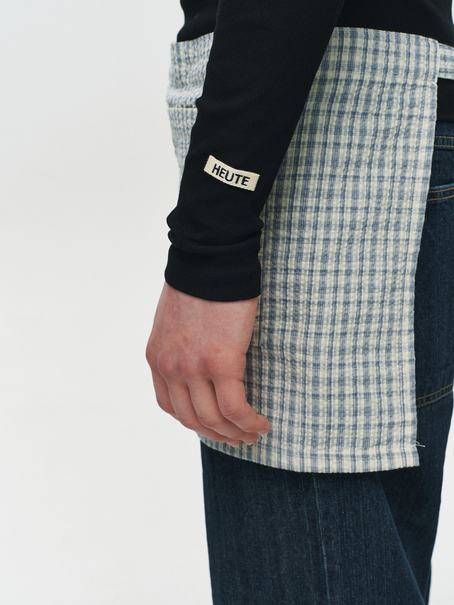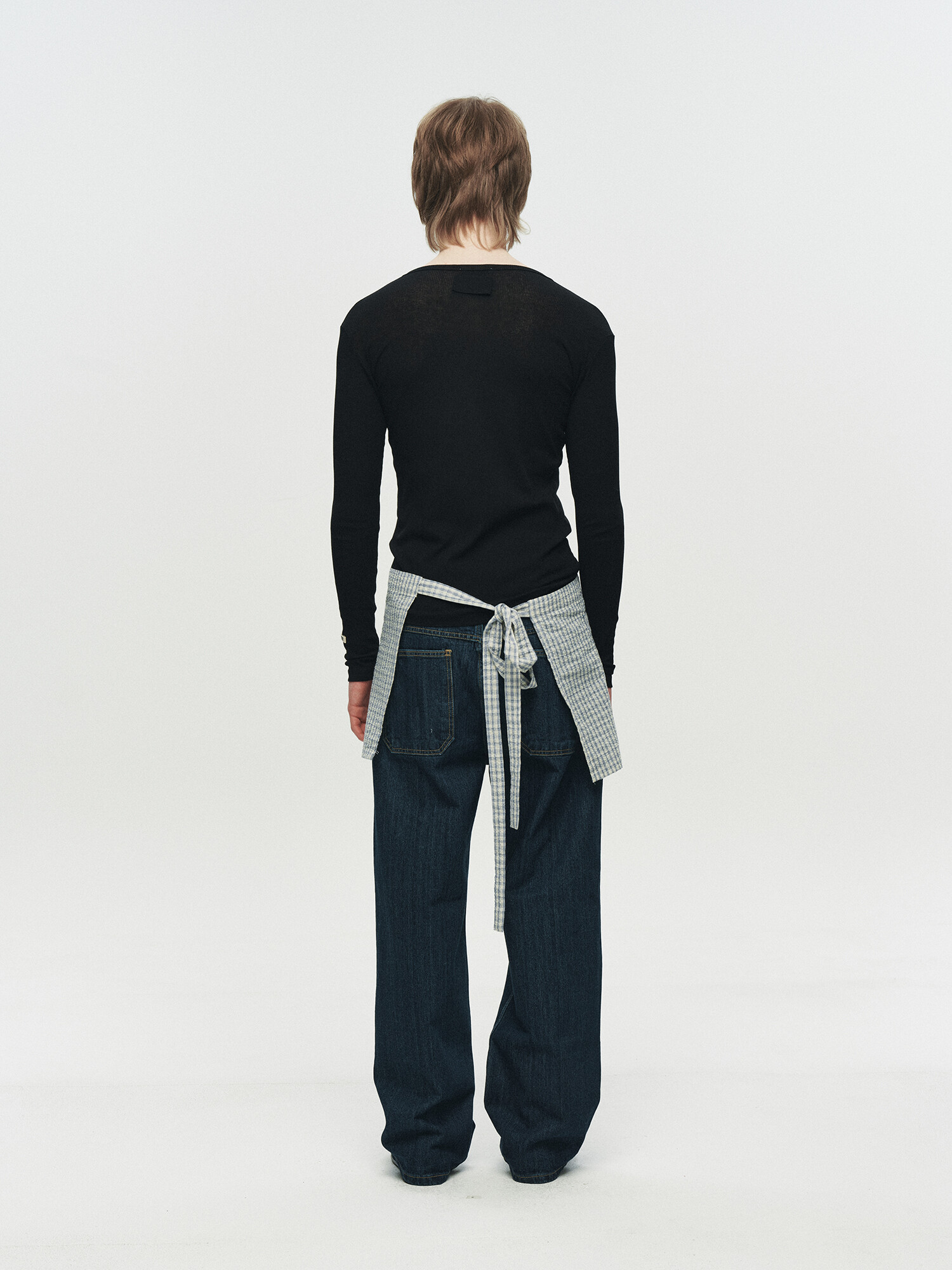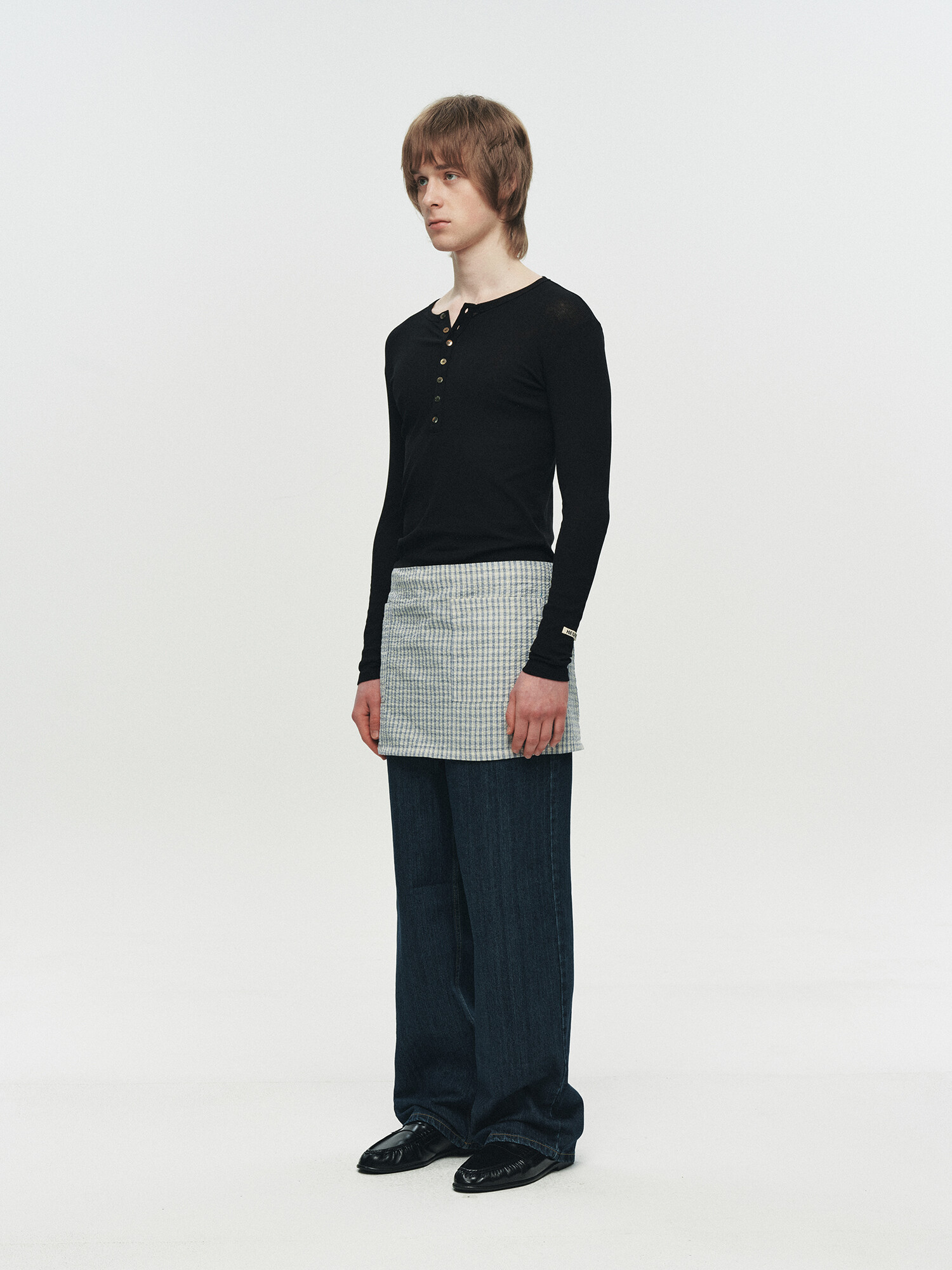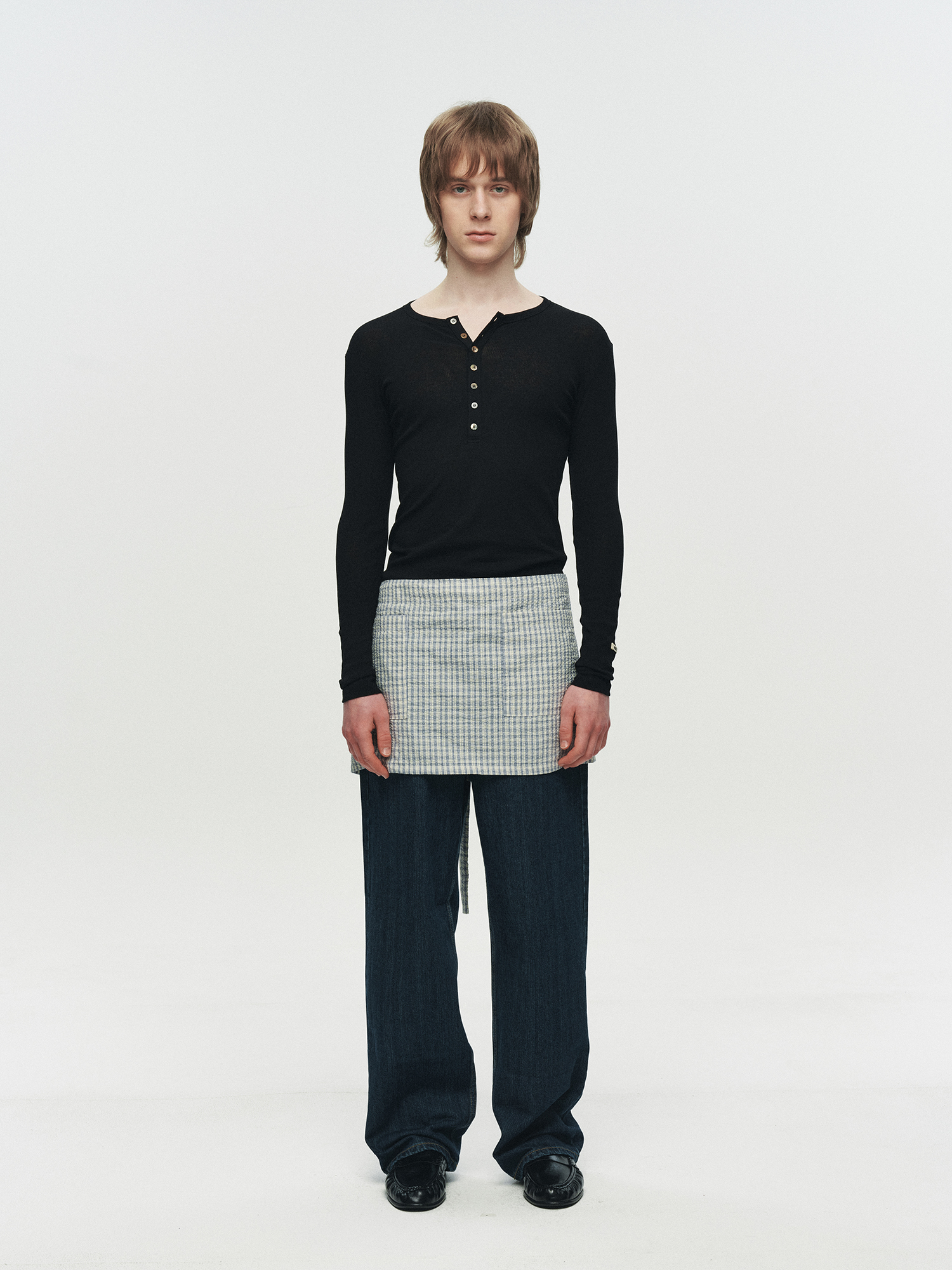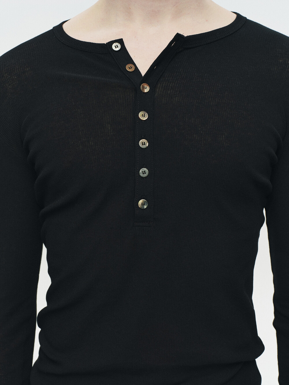 RIB SHEER HENLEY NECK T-SHIRT (BLACK)