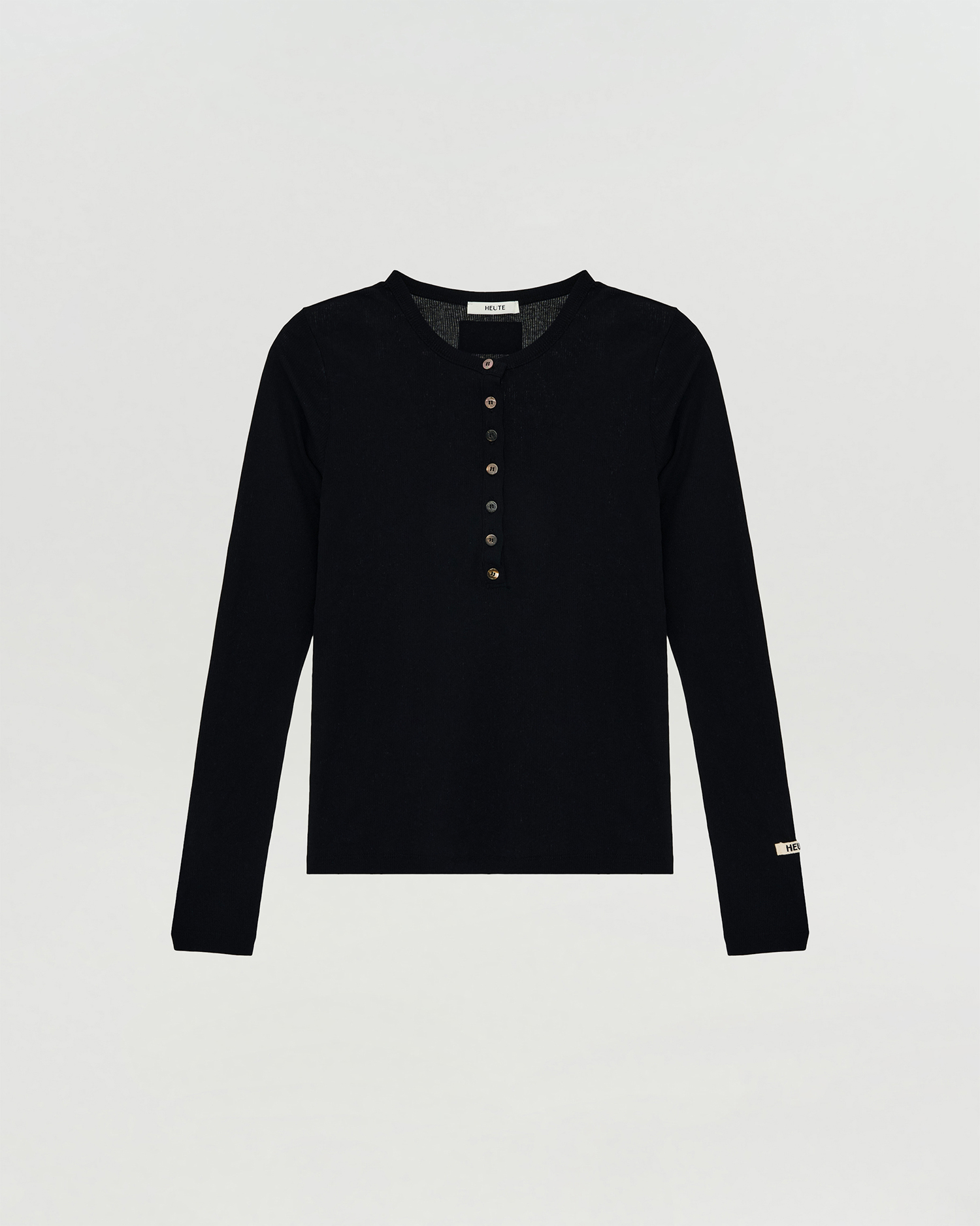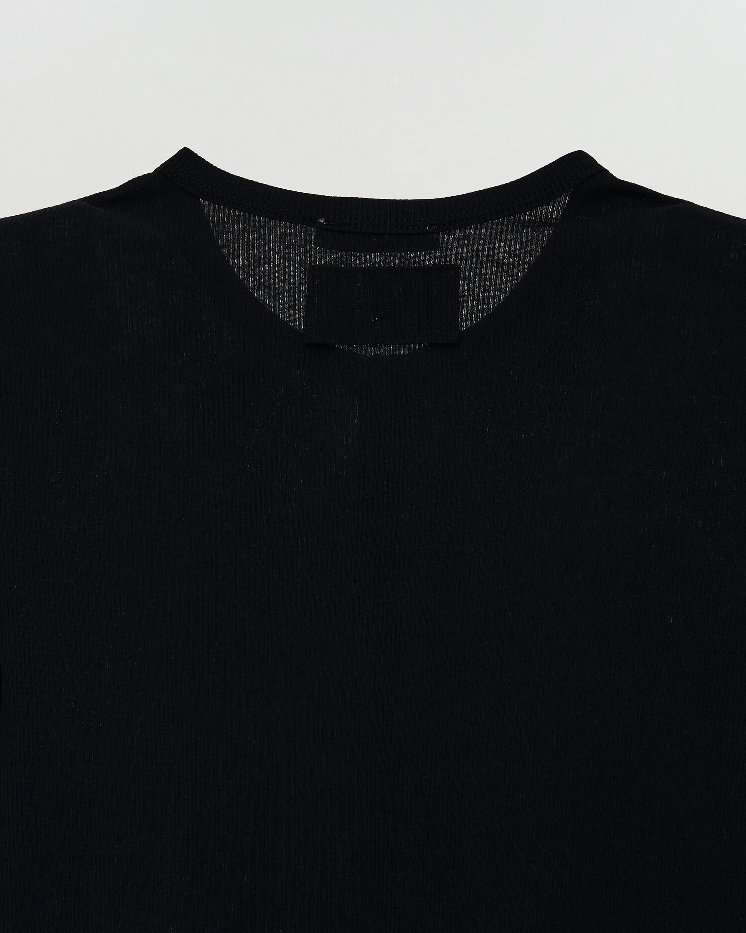 RIB SHEER HENLEY NECK T-SHIRT (BLACK)