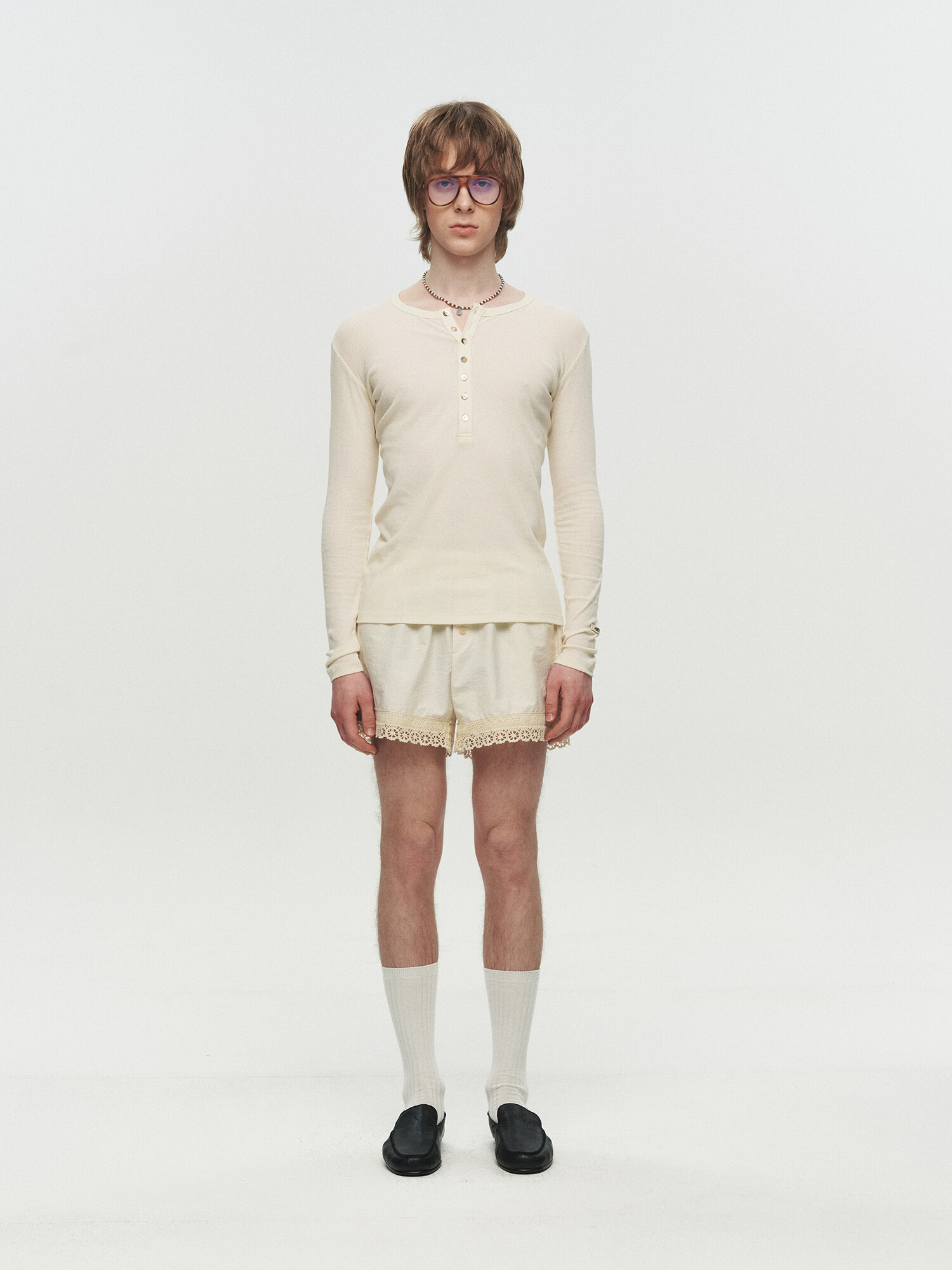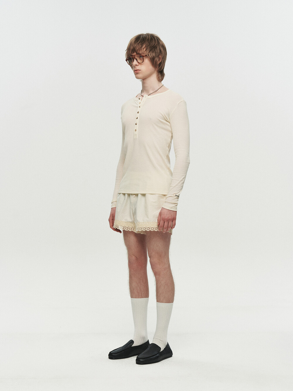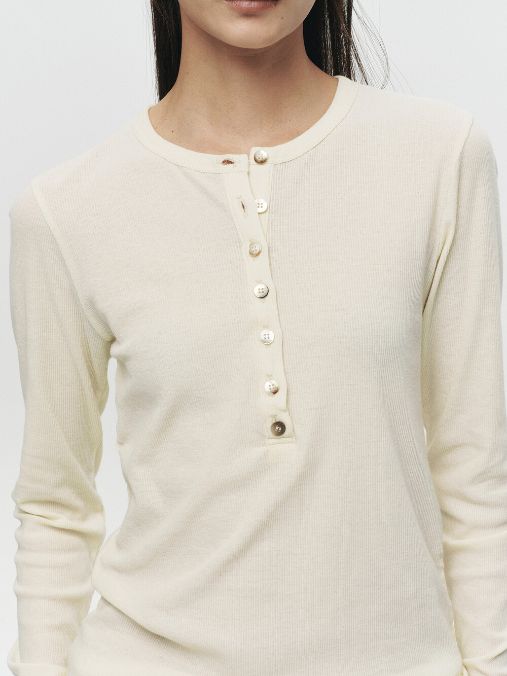 RIB SHEER HENLEY NECK T-SHIRT (IVORY)
