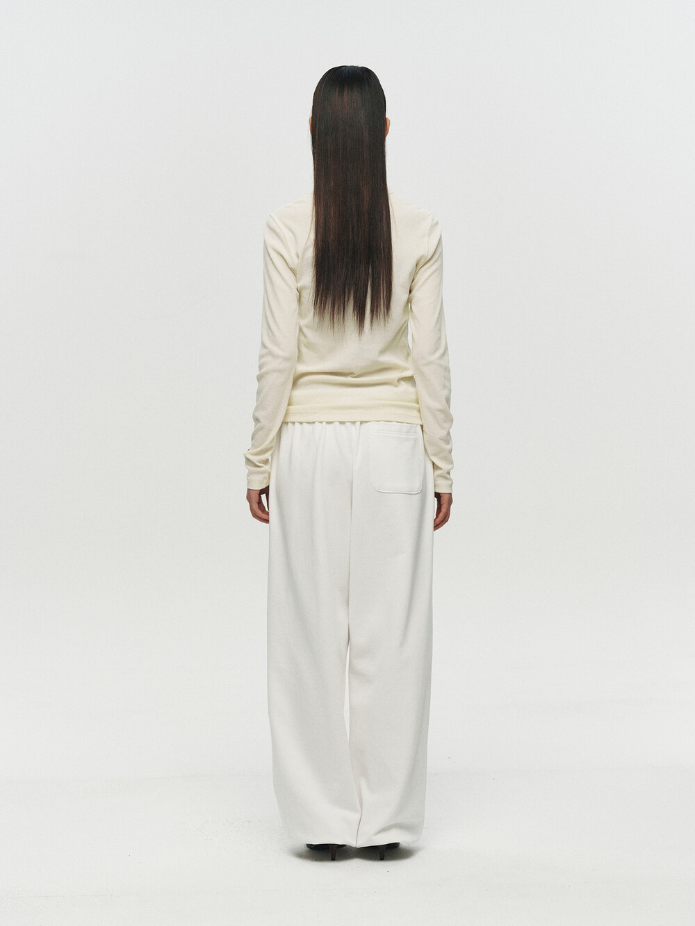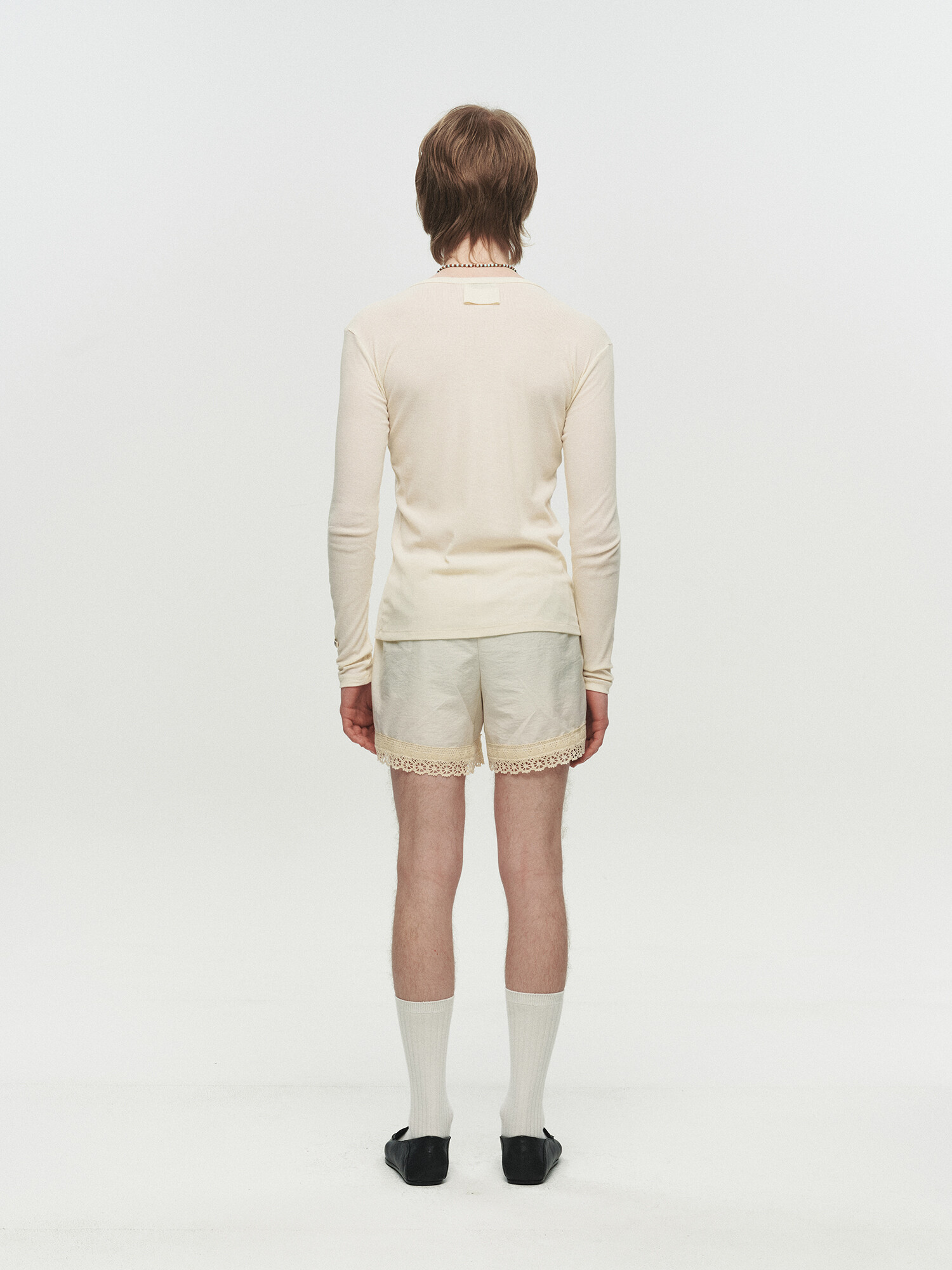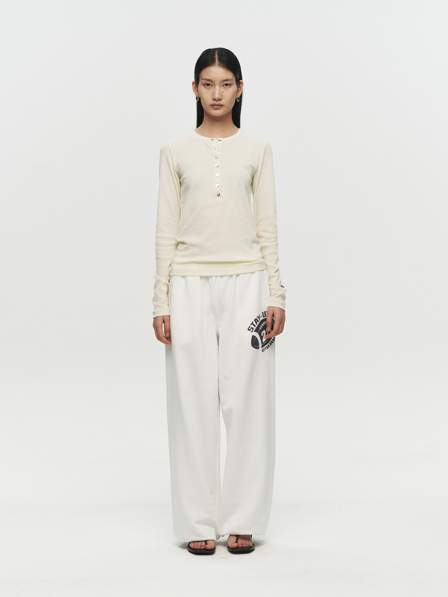RIB SHEER HENLEY NECK T-SHIRT (IVORY)