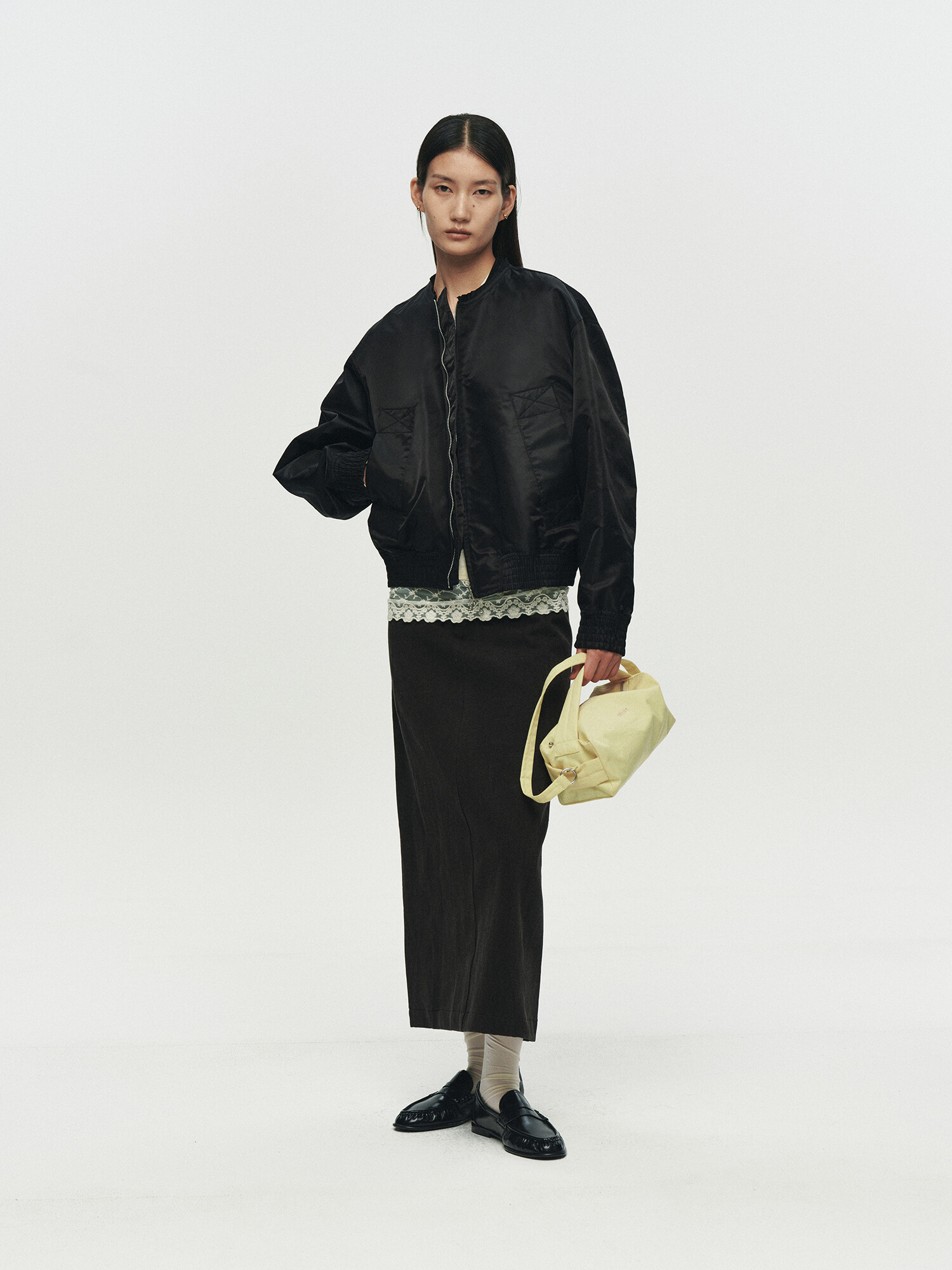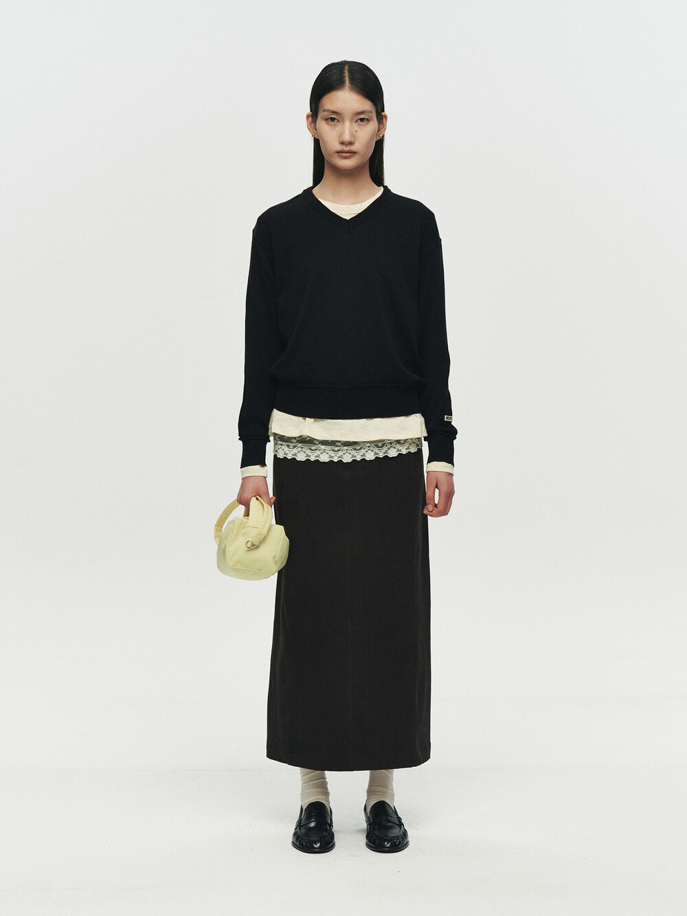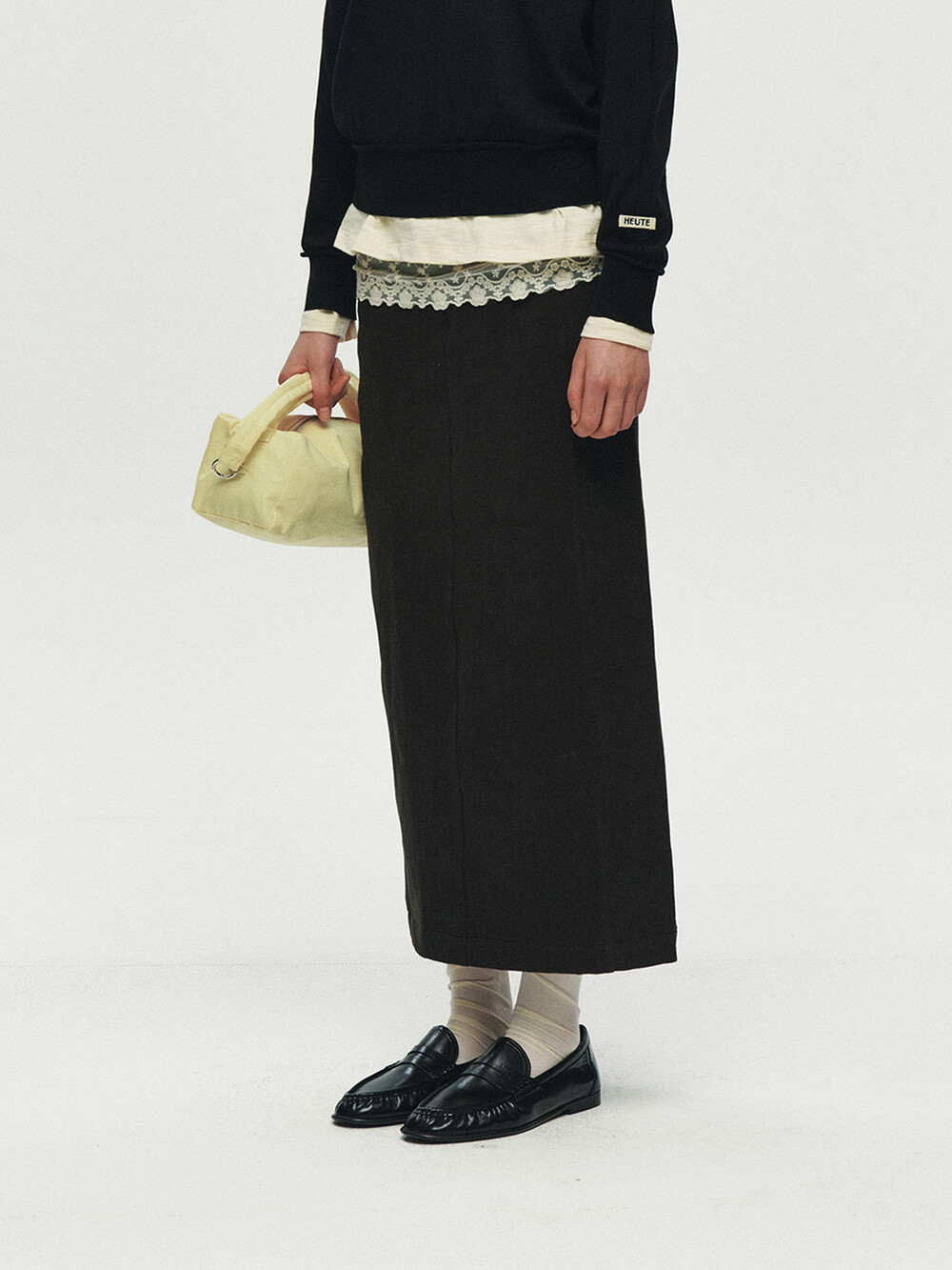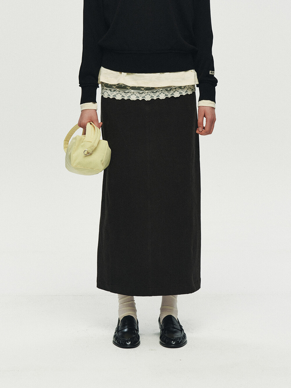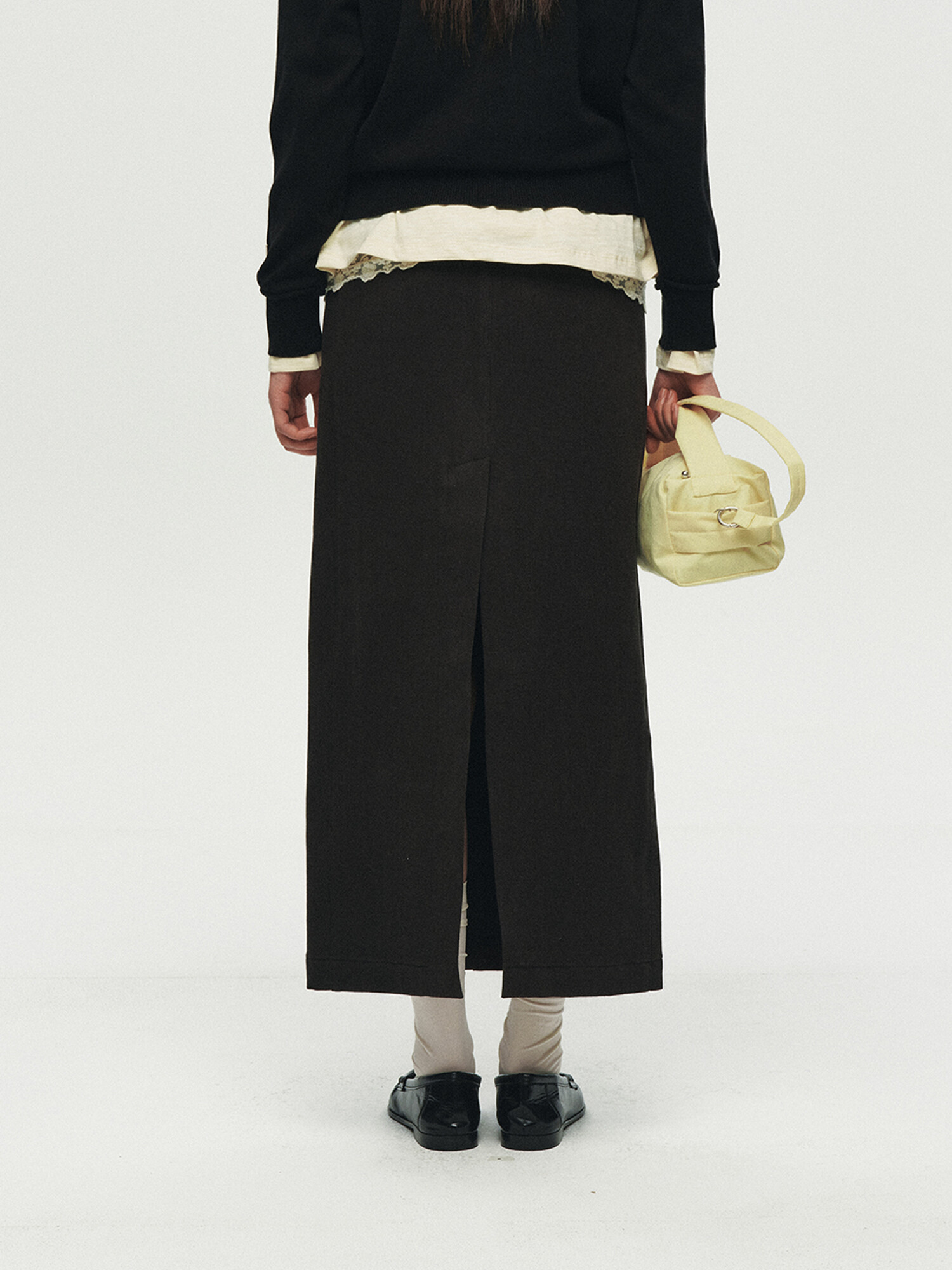 REFINED STRAIGHT TWILL SKIRT (BLACK)