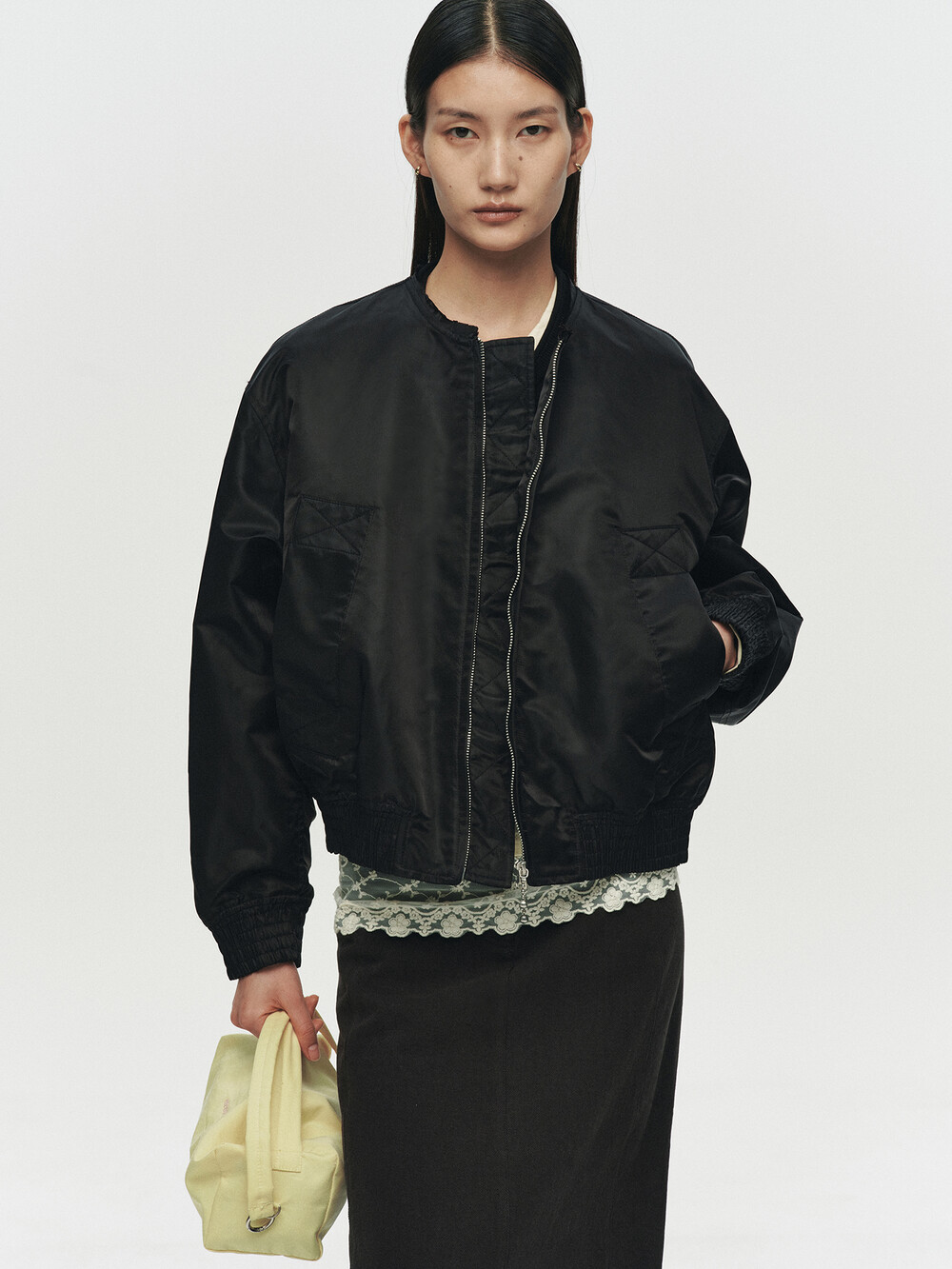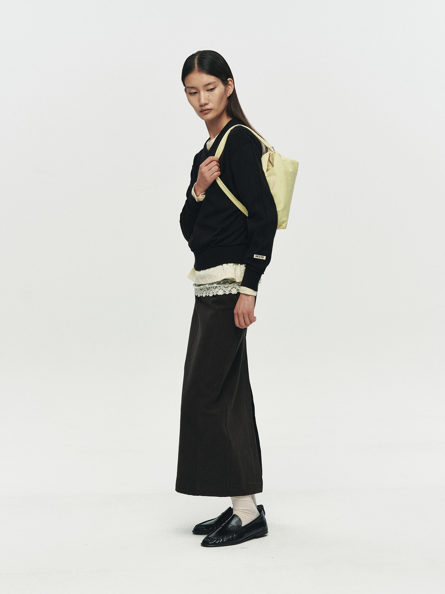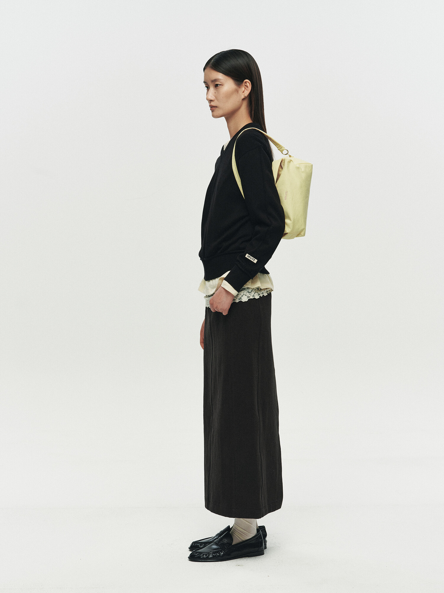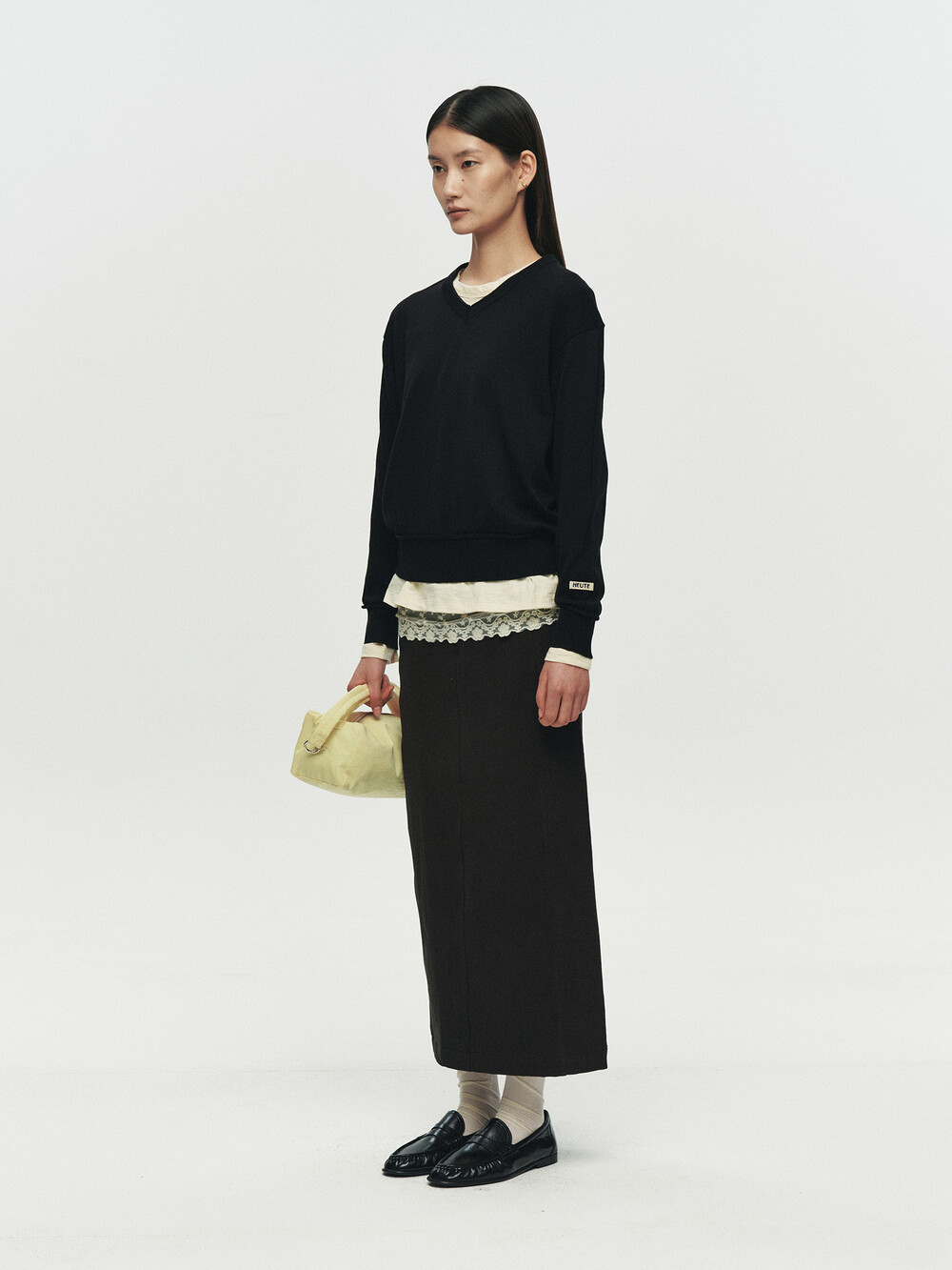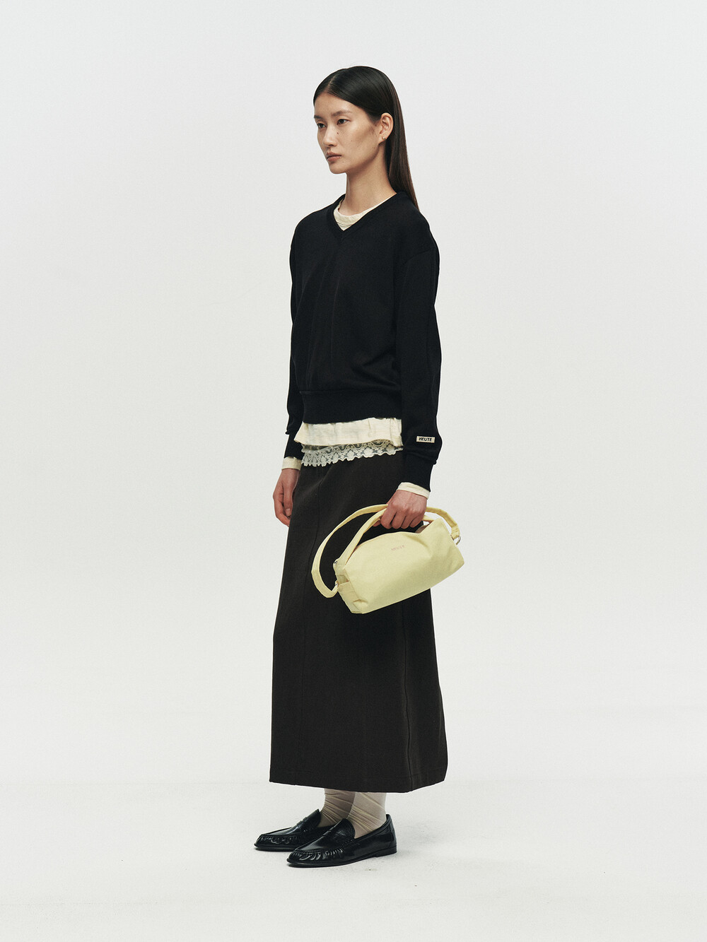 REFINED STRAIGHT TWILL SKIRT (BLACK)