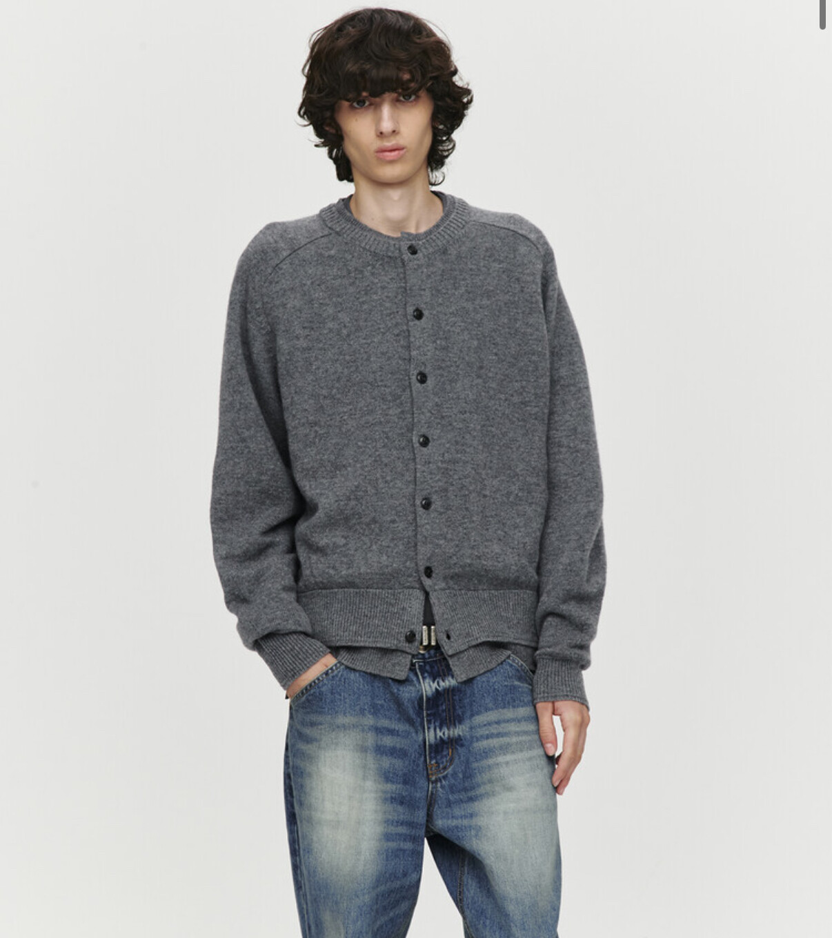 DOUBLE RIB CROP KNIT CARDIGAN (CHARCOAL) L SIZE