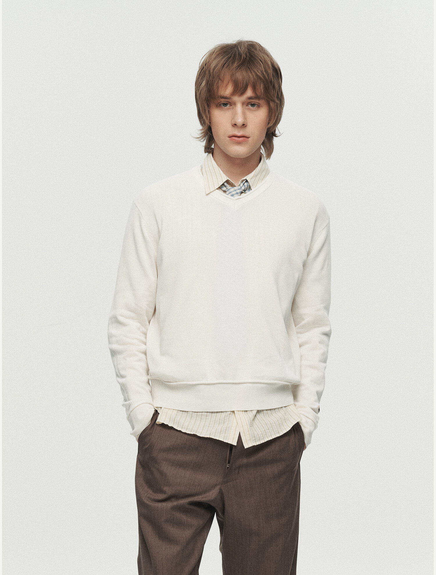 NIEL COTTON V-NECK KNIT (OFF WHITE) M SIZE